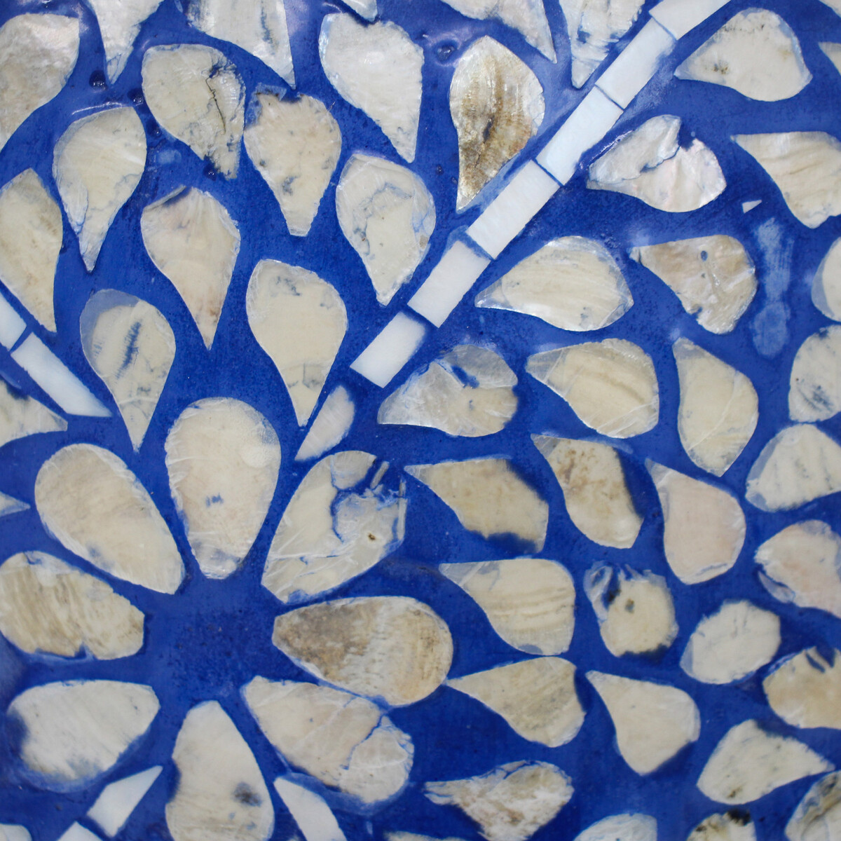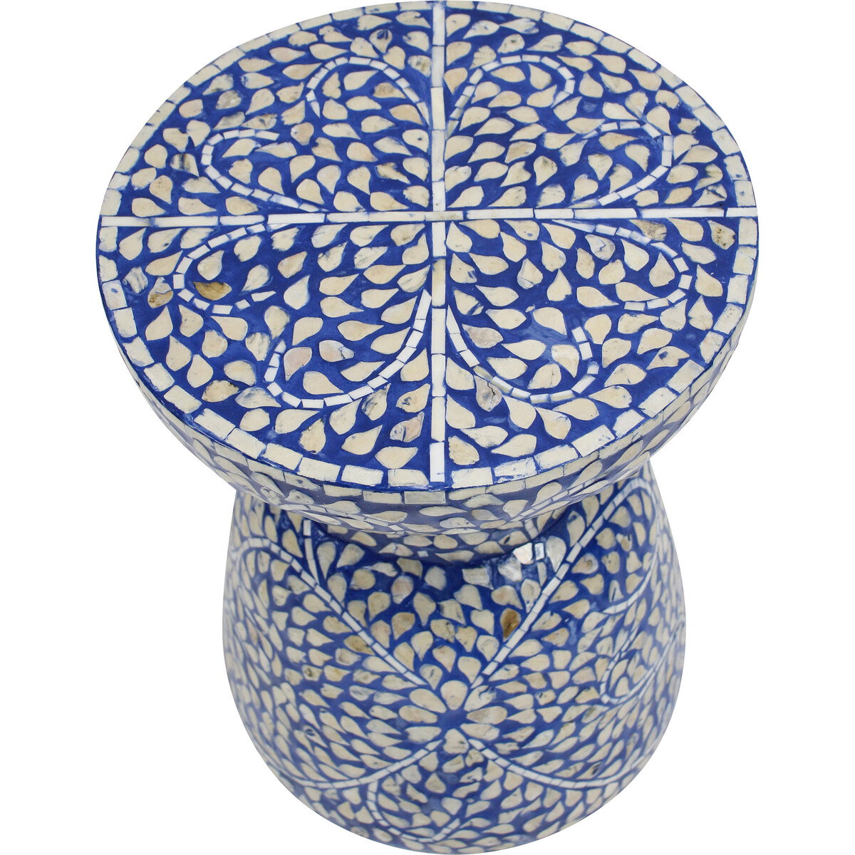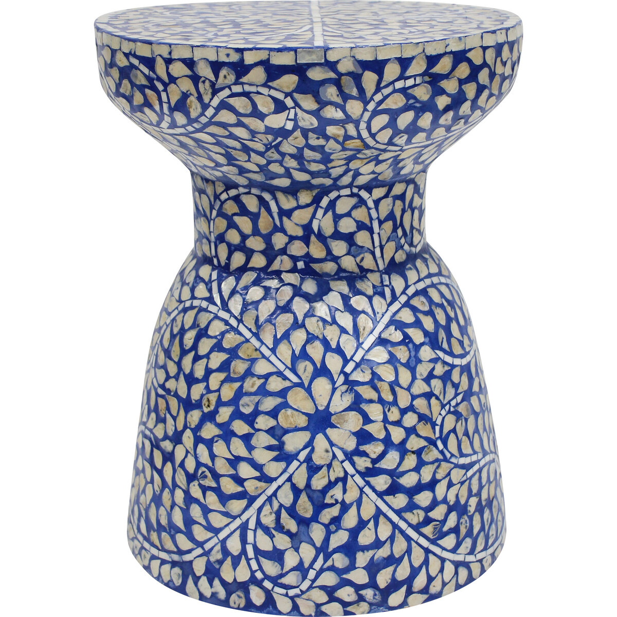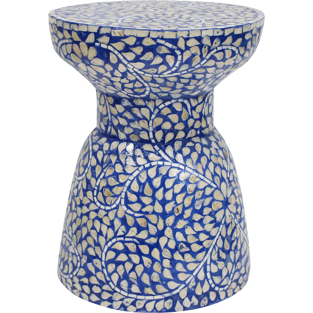 Made from the rare, unique and exquisite capiz shell, this aesthetic and functional piece offers comfortability. Featuring a sleek design and antique style, Stool Table Hampton has a lovely blue hue, patterns made of capiz shell and curly white lines that complete the look.