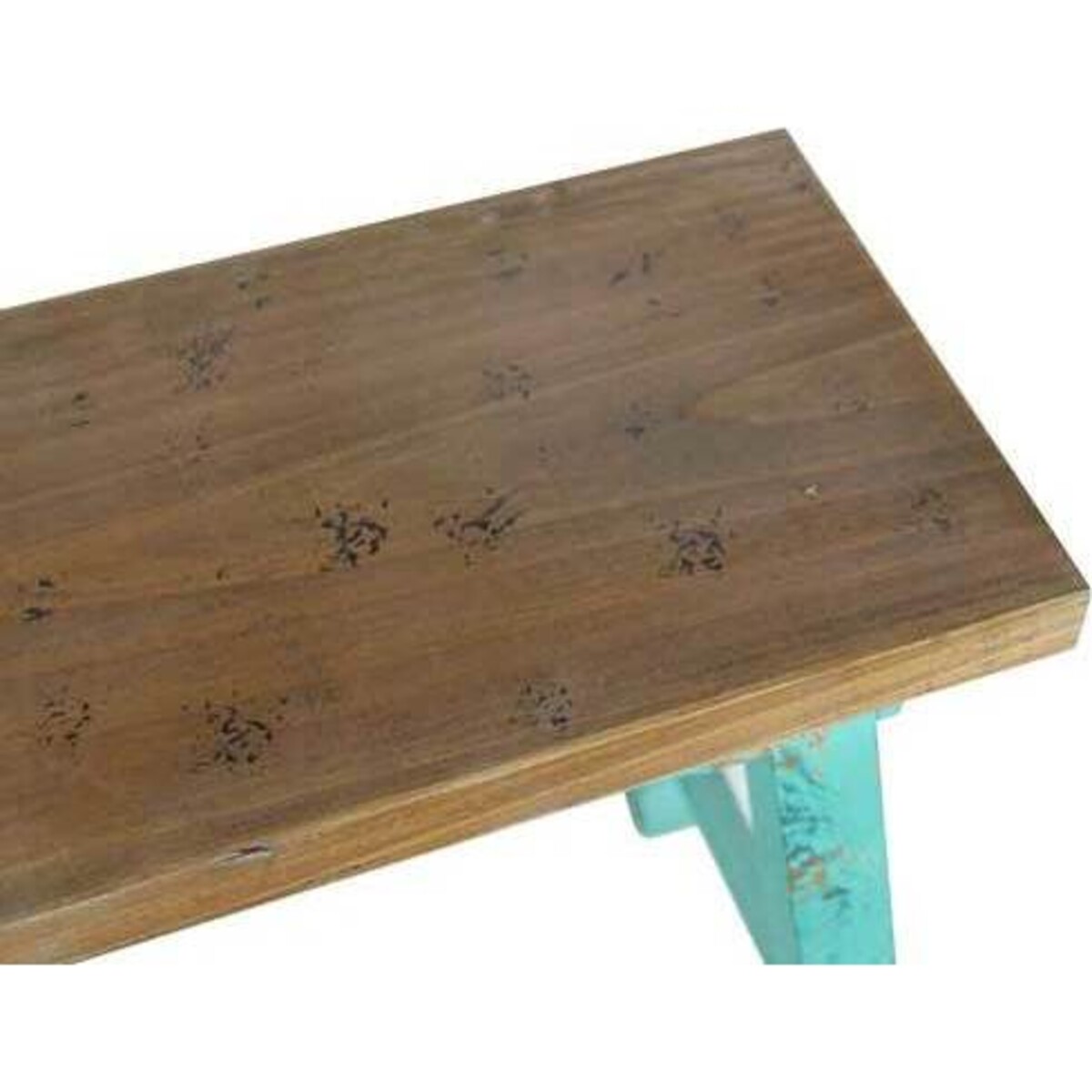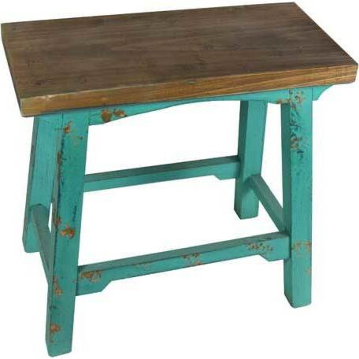 Introducing the Teal Vendi Stool from Lavida. These lovely wood stools feature a bottom that's been painted teal and a plain, wood, rectangle top. You can use them as seating, or even to be a base for various knick - knacks or plants around your home. They're also great to stand on to use when you can't reach something that's on a high shelf. The stools are worn to give them a weathered appearance, as if they've been part of your home for years. They're beautiful, but they're also incredibly functional and bring a nice dose of colour to whatever room you keep them in, such as in the kitchen or on the porch.