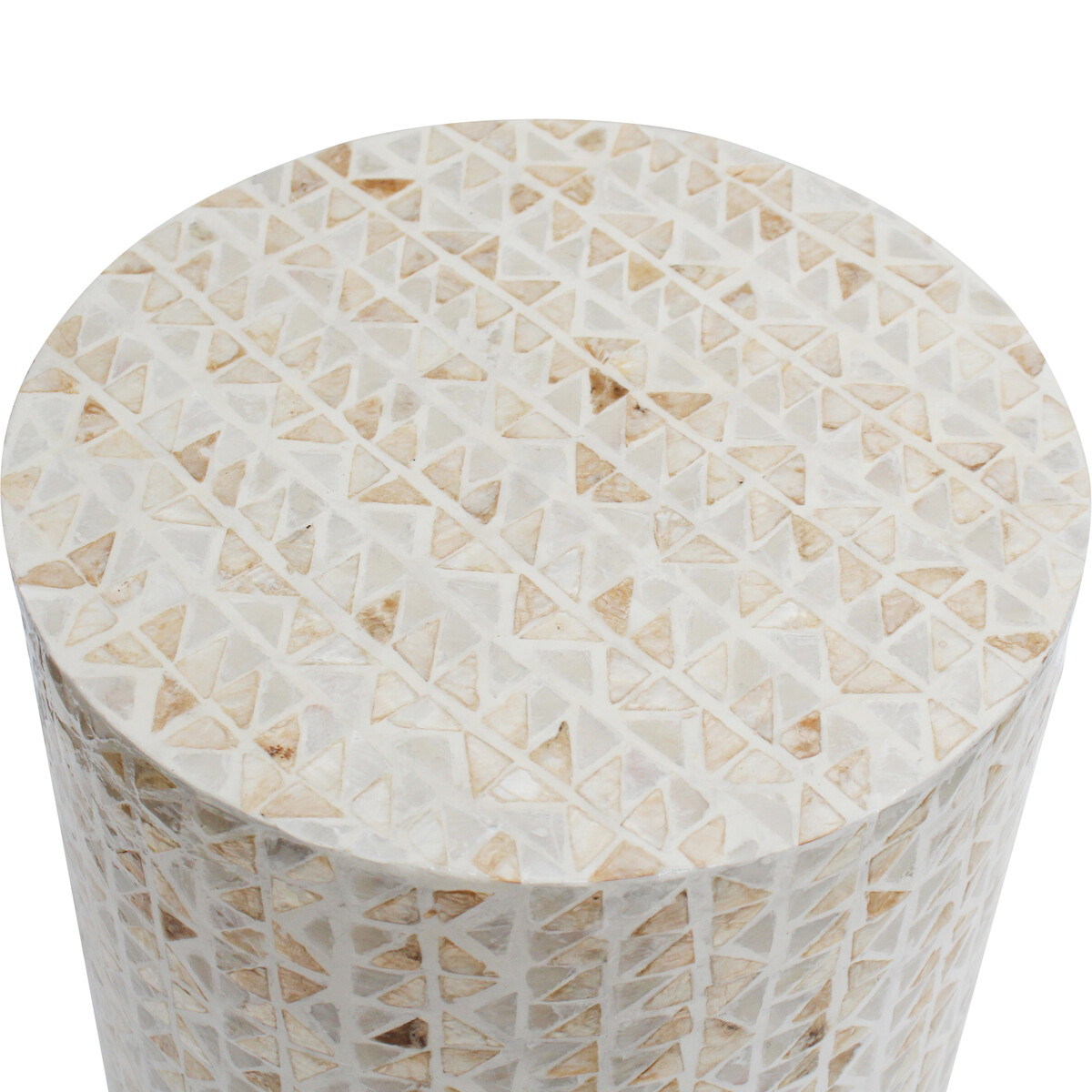 The Stool/Table Capiz Cream and Natural would be irresistible to customers who love furniture with distinctively handmade designs and superior quality. This is because this triple functioning piece of furniture has all of those features and more. It is handmade in such stylish cylindrical form and made using premium quality Medium Density Fibreboard and ornamented using Capiz.