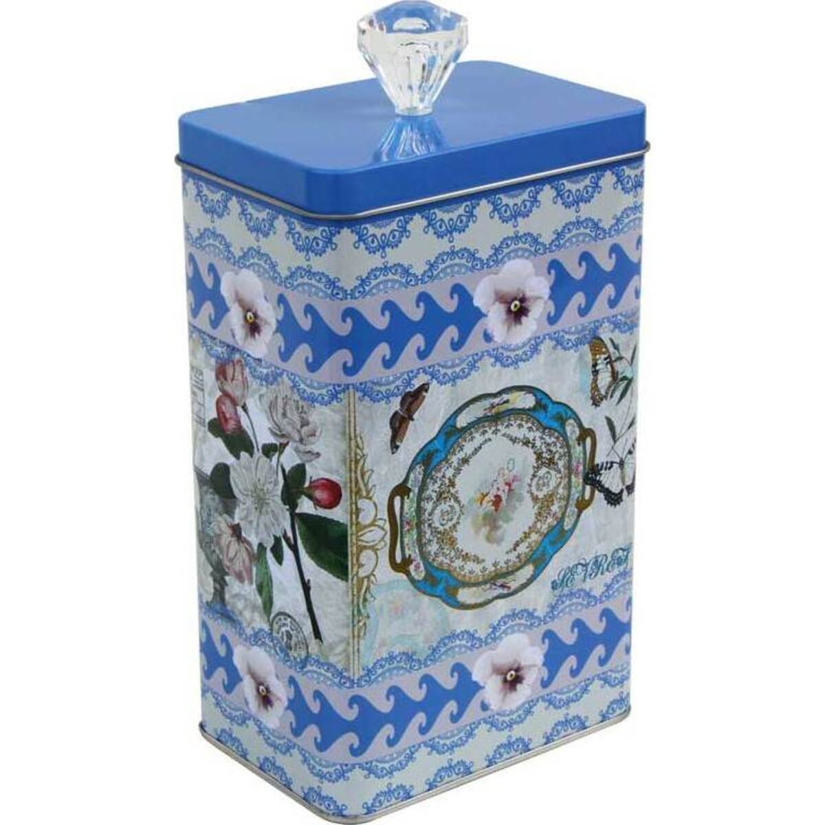 The item Storage Tin Blue Platter measures 12x23x8 cm and features decorative artwork done with a mixture of blue and white. The lid adopts solid blue and carries a beautiful knob on top to facilitate sound opening and closing operations. This storage ware has large capacity and can thus accommodate a significant number of bulky food items. The user may also decide to store sensitive kitchen items inside it to keep them from getting dusty as their time of usage draws near. The air - tight nature of Tin Blue Platter means it is free from moisture and corrosive effects on the inside.