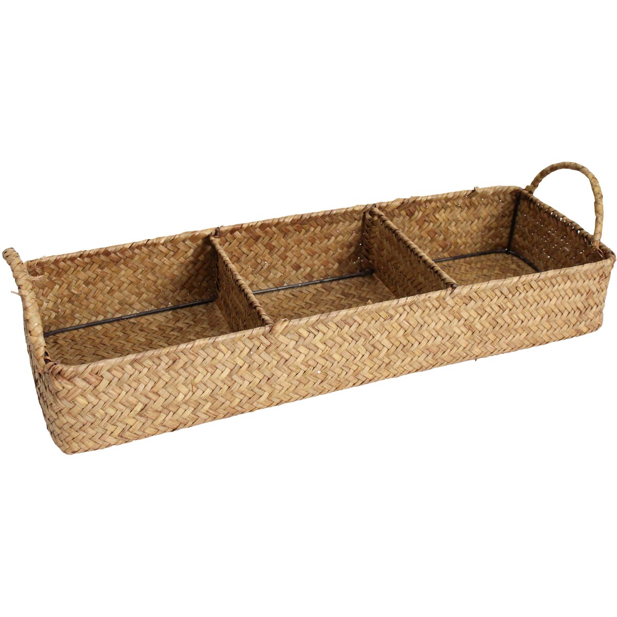 Be it the children ‘s desk where keeping all kinds of stationery well sorted can be a challenge-or your kitchen counter with its numerous bottles and jars or even your vanity space where your make up could be kept better sorted-for all of these spaces this 45 cm long and 7 cm deep organizer has a great deal of usage. A fine weaving technique gives the rattan structure strength and reliability. The width of the tray is a s u as 15 cm which makes it rather large-one could also in fact use it to create a display with tiny potted plants or place it inside the almirah using it to keep lingerie sorted, there are endless possibilities when you a have an organizer as versatile as this. The handcrafted piece comes with a natural look rattan that has been woven with much neatness and a classic kind of style. The two handles make it easy to lift and place as one would like.