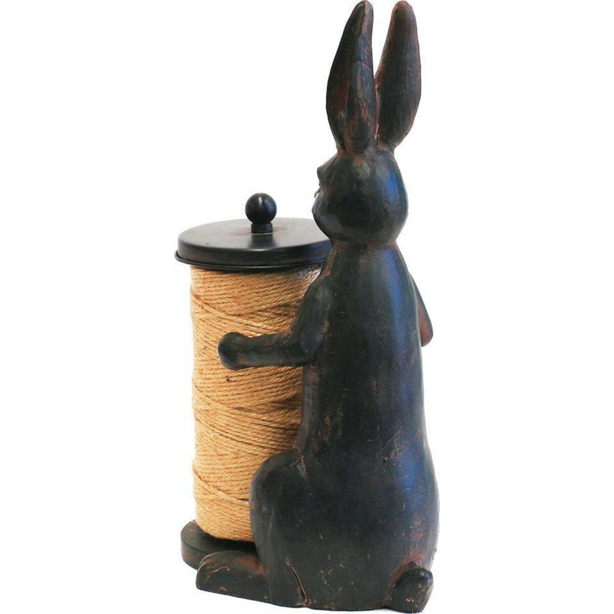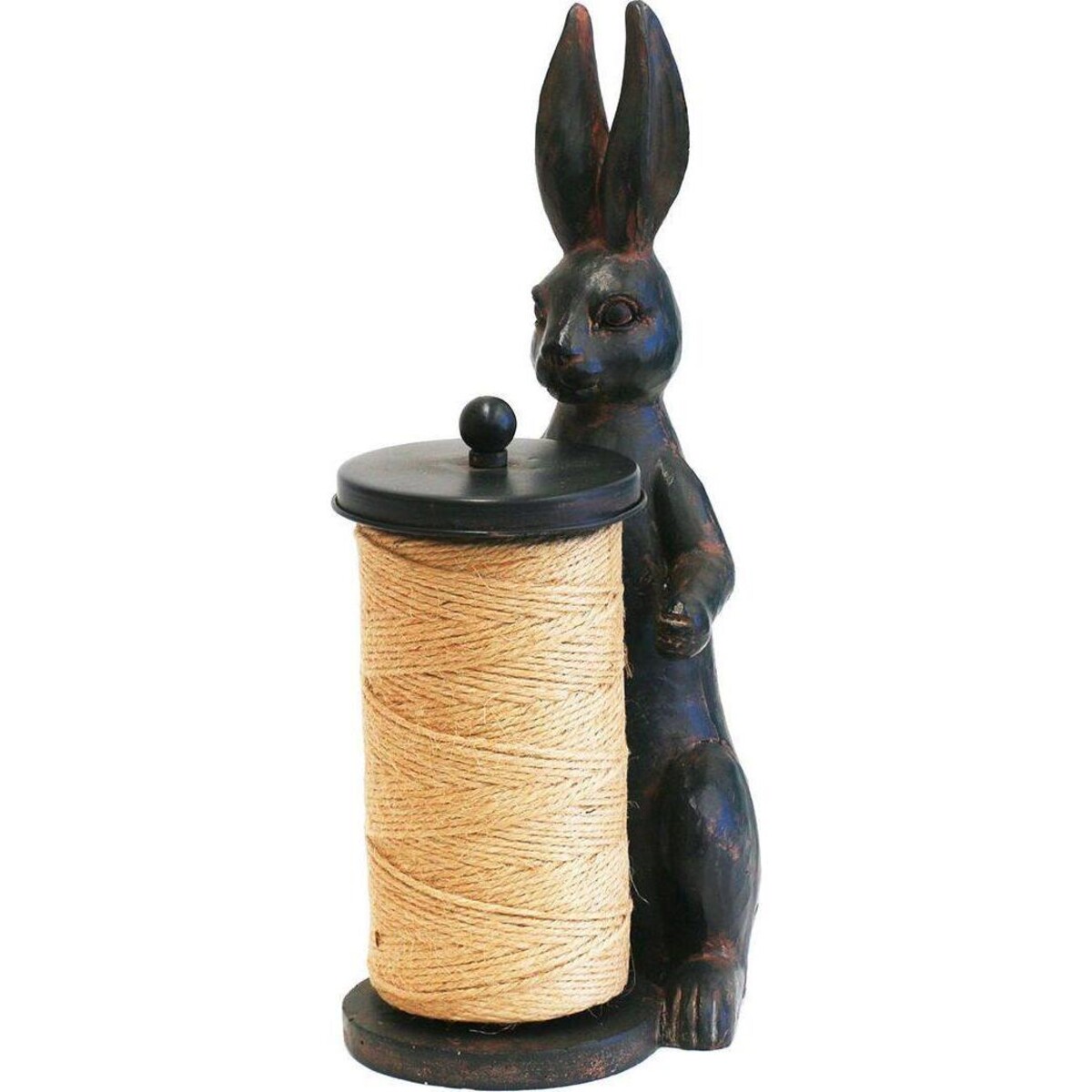 In an attempt to keep string well under control, while in use be it in the office or in the kitchen ?there is a simple little device that was thought of many years back and continues to be the most effective way of keeping your reel of string from turning into this tangled mess that is hard to make much of. This bunny holding the pin sits squarely on its flat base and holds the pin soundly and around it the reel spins off the yarn yard after yard without falling off in a heap . The reel holder is particularly pretty because of the lovely figurine of the bunny with its erect ears and the manner in which the dark metal body creates this very antique impression. Useful as even today there are things that only strings can fix but knowing how to get the job done without too much fuss is important and to keep the string under control all the more! The string holder is about 27 cm in height and about 17 cm in width. Would look more a décor accent than anything that has such a valuable utility.