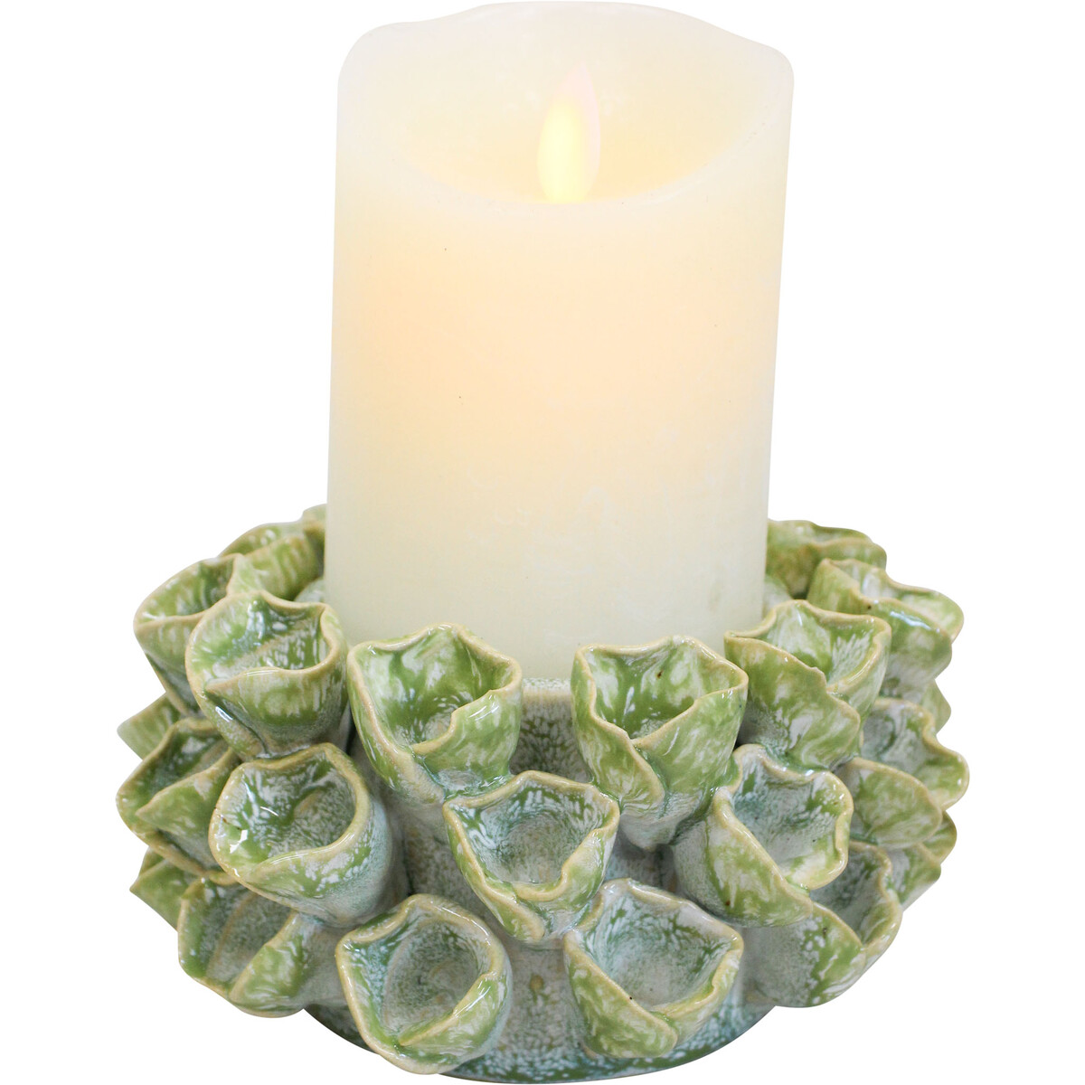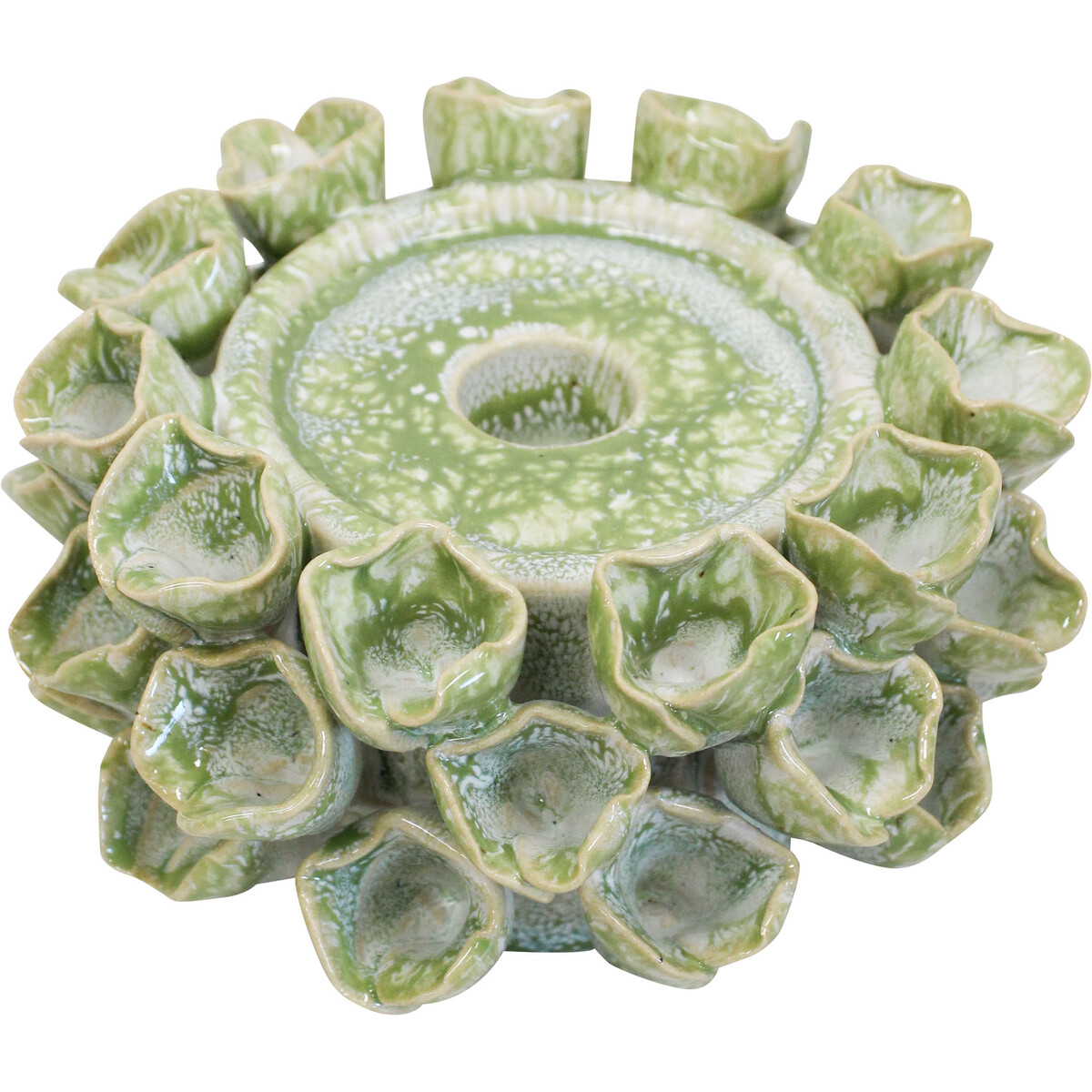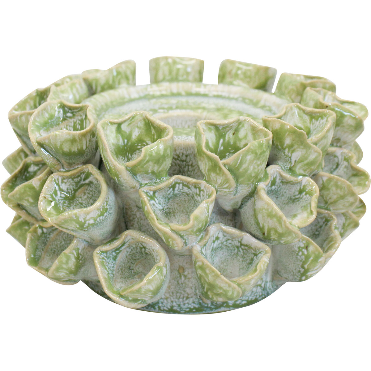 Invite a touch of serene beauty to your collection with the exquisite Succulent Bell Candle Holder Mellow. This handcrafted treasure stands out with its delicate assembly of ceramic succulent petals, meticulously arranged to cradle a calming candlelight. Measuring 17 by 17 by 9.3 cm, it strikes the perfect balance between presence and subtlety, easily finding its place in any setting.