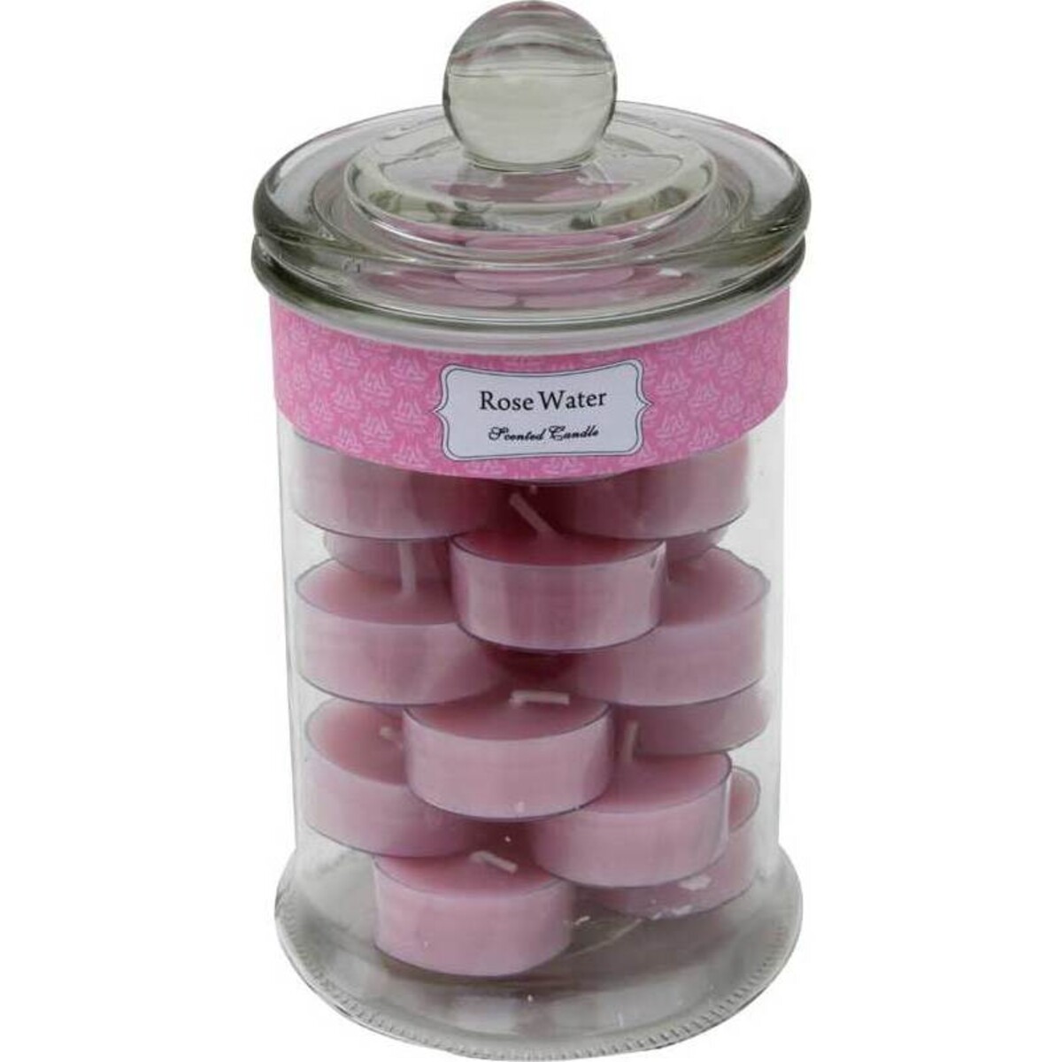 T - light Jar Rosewater exhibits an aesthetic glass design that features several small plates of circular form superimposed upon each other at successive levels going upwards. The shape eventually shifts into regular circular form near the top that has a lid of glass. This item is ideal for use during winter when it gets extra cold. Lighting up the candle within the T - light jar a room saturates the surrounding with the characteristic aroma of Rosewater while warming up its occupants. It blends in well with special events due to its beautiful crafting and the pinkish wax gives a nice colour reflection when the candle is aflame.
