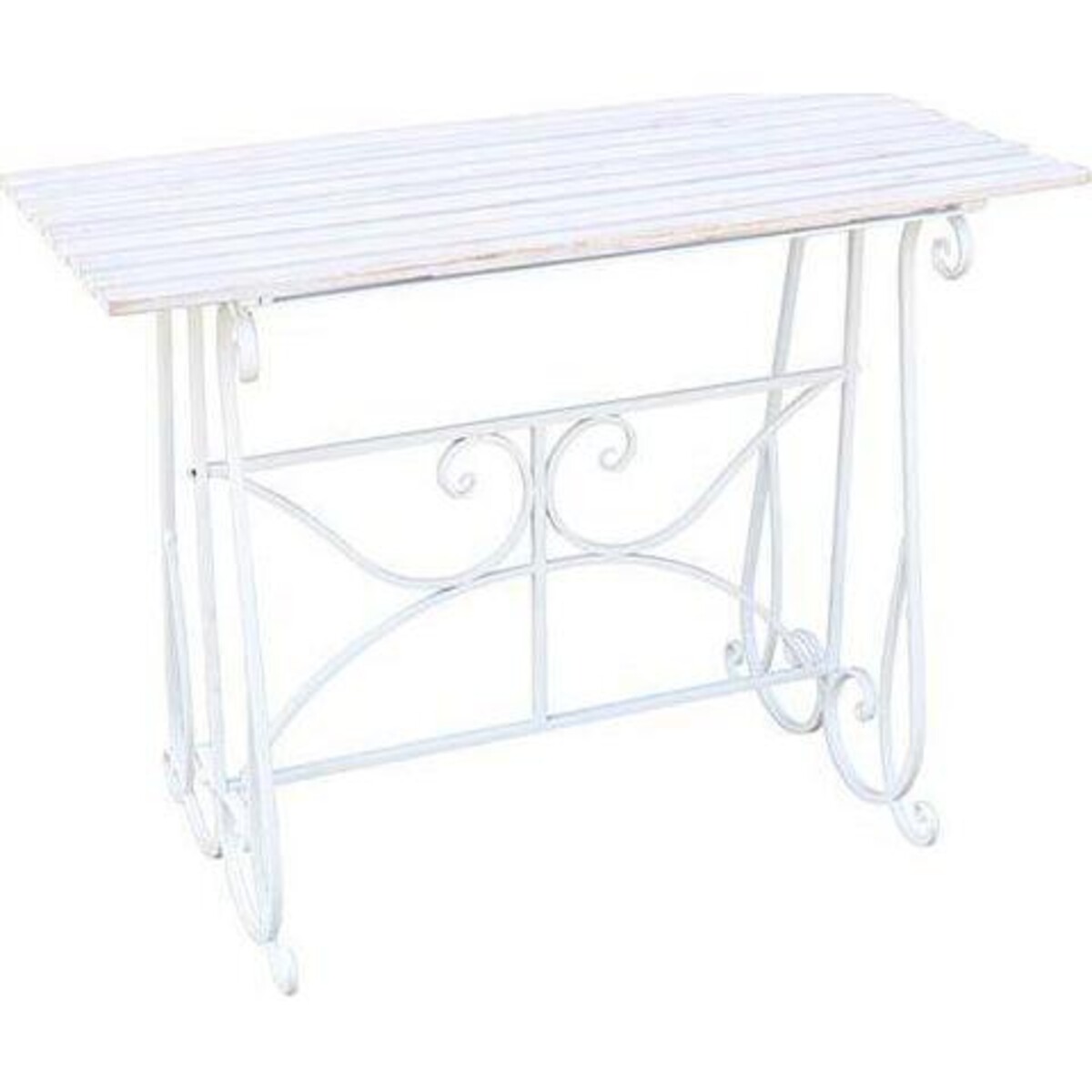 Metal always endows spaces with rugged urban feel but when it has been given the shabby chic treatment as in the case of this all white table Boucle, it will lend a country charm that comes with this shabby chic and modern vintage. The long table has a top that is made of metal strips giving a ribbed feel to it and doused with white paint which seems to be shabbily done. The lower portion of the frame that supports the structure is more ornate with curled legs with an more Parisian feel. The height of the table is 78 cm while its length is all of 012 cm making it truly a large enough piece for using as a table end or as an accessory if the number of guests suddenly rises and one needs an additional table or tow. Also useful when you wish to dine outdoors. Use it as a part of your patio furniture - its size and weight makes it highly portable and thus useful around the house. When not used for any other purpose use it to display your décor specials, lamps, pottery and simply make a stylish statement with it.