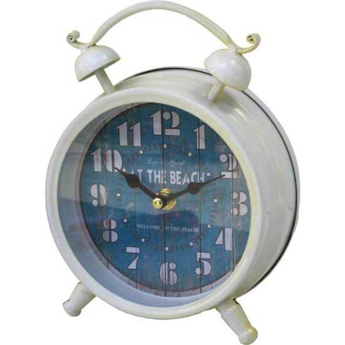 This little white clock features two little legs so you never have to worry about the clock sliding out of place, two bells at the top, and a blue face with black hands. White numbers and lettering that reads "At the Beach" are the final finishing touches. Whether you use this clock as your alarm or just to add a little style to a small space that could use a touch of colour, you're going to love incorporating this clock into your home.