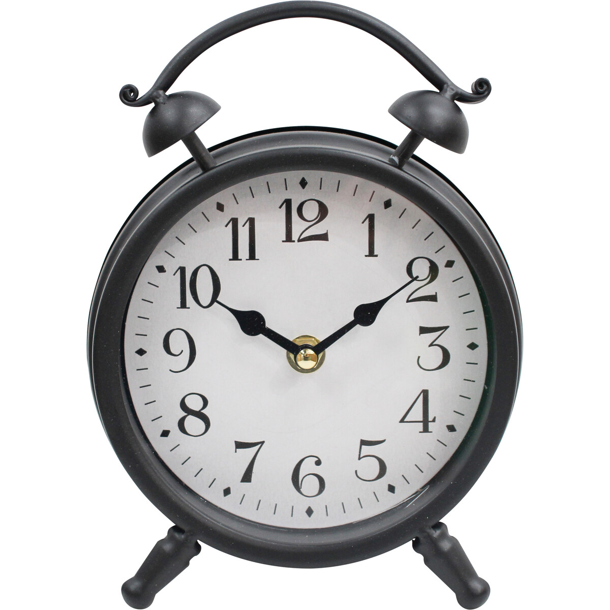 Despite the world having gone digital, our eyes till lookout for that dial with its hands ticking away and edging us an introduction as to how fine we are doing with our day's schedule. Get ahead of your day's tight time schedules with this clock which keeps great time, is compact, modern and chic, simple in its design - the kind to fit in as effortlessly on your mantle as it would on your study desk. Usage of metal and MDF gives it a sturdy composition all black with matte finish, the dial is all white with the hands in black making the visibility of the time all the more clear. Functional accuracy and a pleasing old - world charm about it make it great pick if you are planning to give a timely dose to your space - what could be more charming than a little table top clock that brings back an old bygone time with its mere presence. The clock is all of 21 cm in height with legs that slant sideways and help keep it well balanced. Runs on battery seamlessly. The little arched handle on top adds to its utterly adorable look.