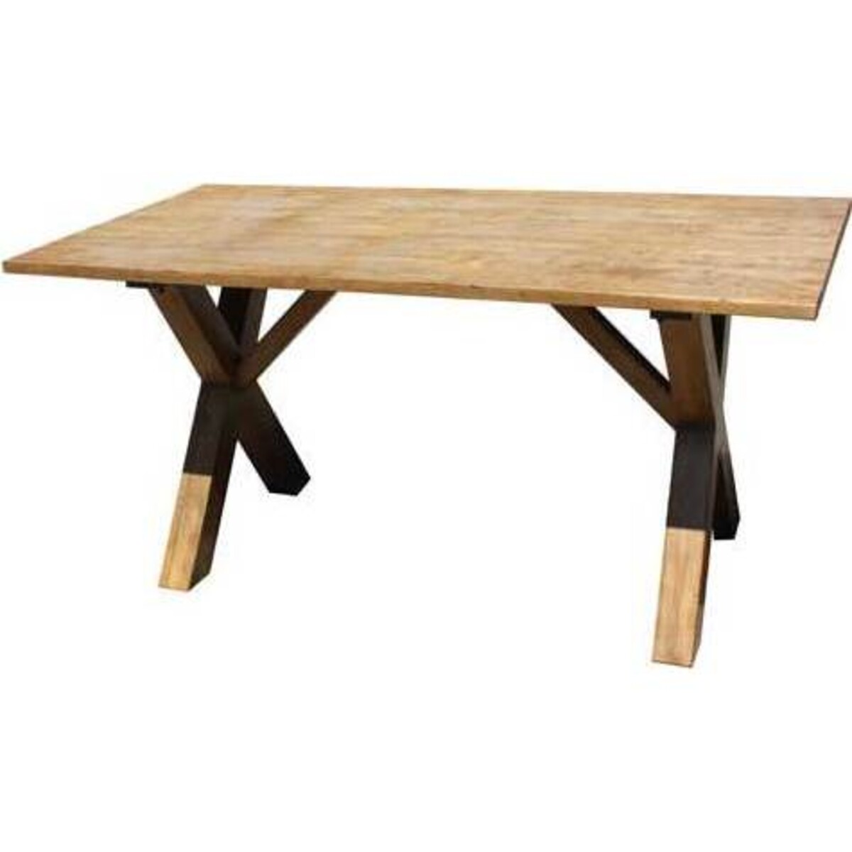 This all natural wood table features a sturdy structure that stands up to the pressures of a dog after a plate of chicken, kids who don't want to finish their dinner, drunk uncles, and the weight of a holiday feast. Use it indoors or out as a buffet table for gatherings and parties or add a couple of benches to it to create a fantastic dining set. Thanks to its colouring and design, it can work well with a variety of decorating styles, especially rustic and country.