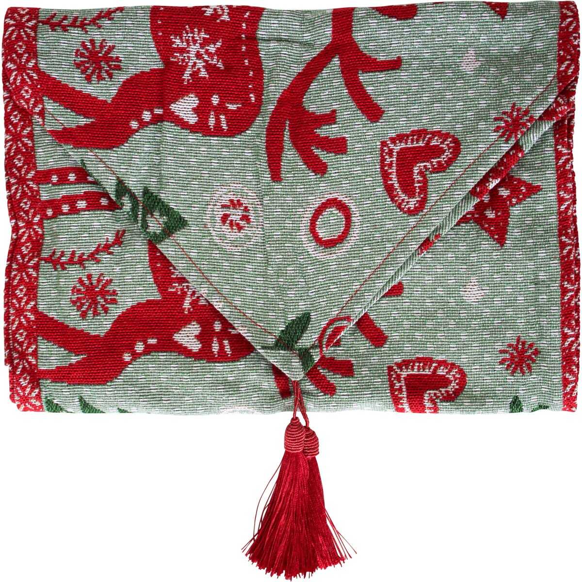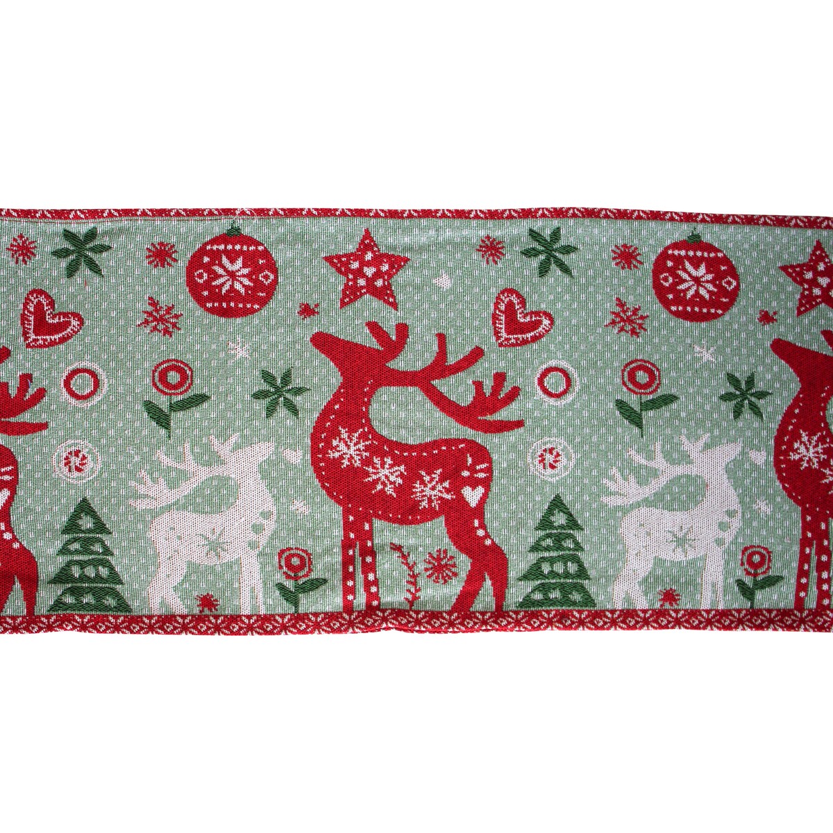 Effortless and easy in the manner in which it uplifts the look of your table scape. This festive inspired table runner will bring colour and one of the most loved symbols of the season to your spaces. Crafted from soft and smooth polyester fabric, its woven design has shades of bright red, white, a soft blue grey and green that makes it such a great play of colours. The tree, lanterns, snowflakes and of course the reindeer makes up its central motifs. Tassels in red add a touch of detail on the ends. Will look as great adorning your dinner table as it would spread across the side board or the console where you might wish to create some kind of a festive themed arrangement. Neat stiches and finely finished edges makes it a great find. Will be tough against stains and pillages which is not unknown during the festive meals.