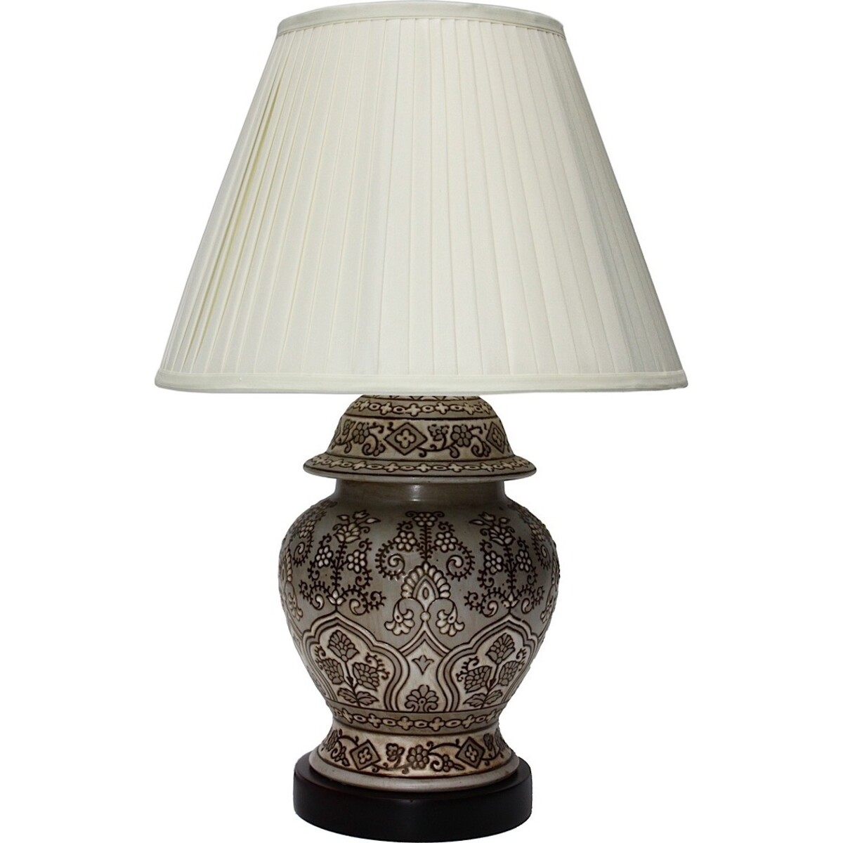 This Table Lamp (Grey Decal Round - Lighting and Shades section) adds a sense of palpable calm while keeping the overall effect elegant and well-appointed. It blends seamlessly with most of your existing furniture or appliances. With a round, thick base to ensure stability while not robbing attention from the overall motif, it boasts of exquisite prints and design that seem to hark back to an innocent time when people cared more about the finer things. The effect can be magical. Let it set the mood or tone it down. Either way, it is a delightful addition to your home's set-up. Let this subdued masterpiece provide the accent?that last, finishing touch-up?to your efforts to install decorative, yet functionally elegant pieces.