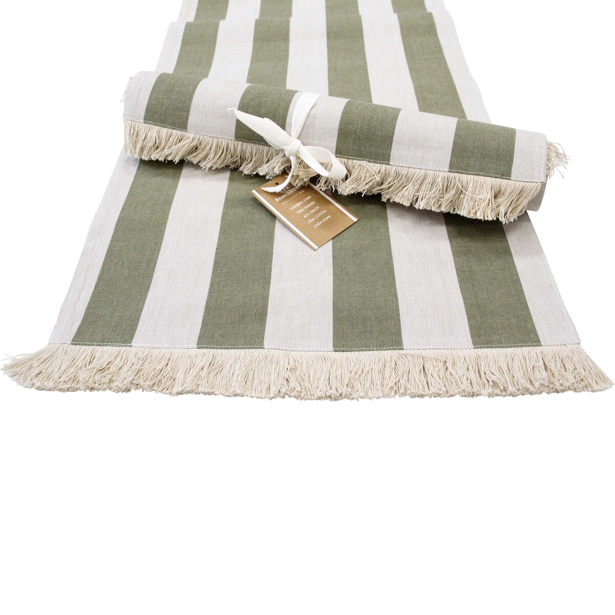 We like to think of our Table Runner Chambray Stripe Olive as a bit of a statement piece for any table. There's just something about those broad stripes and the subtle olive and natural tones that make it perfect for bringing a touch of relaxed sophistication to dining spaces. It's made from stonewashed chambray cotton so, it's soft yet durable, and the 40x180cm size is generous enough to suit both everyday family meals and those special occasions when someone's pulled out the good plates.