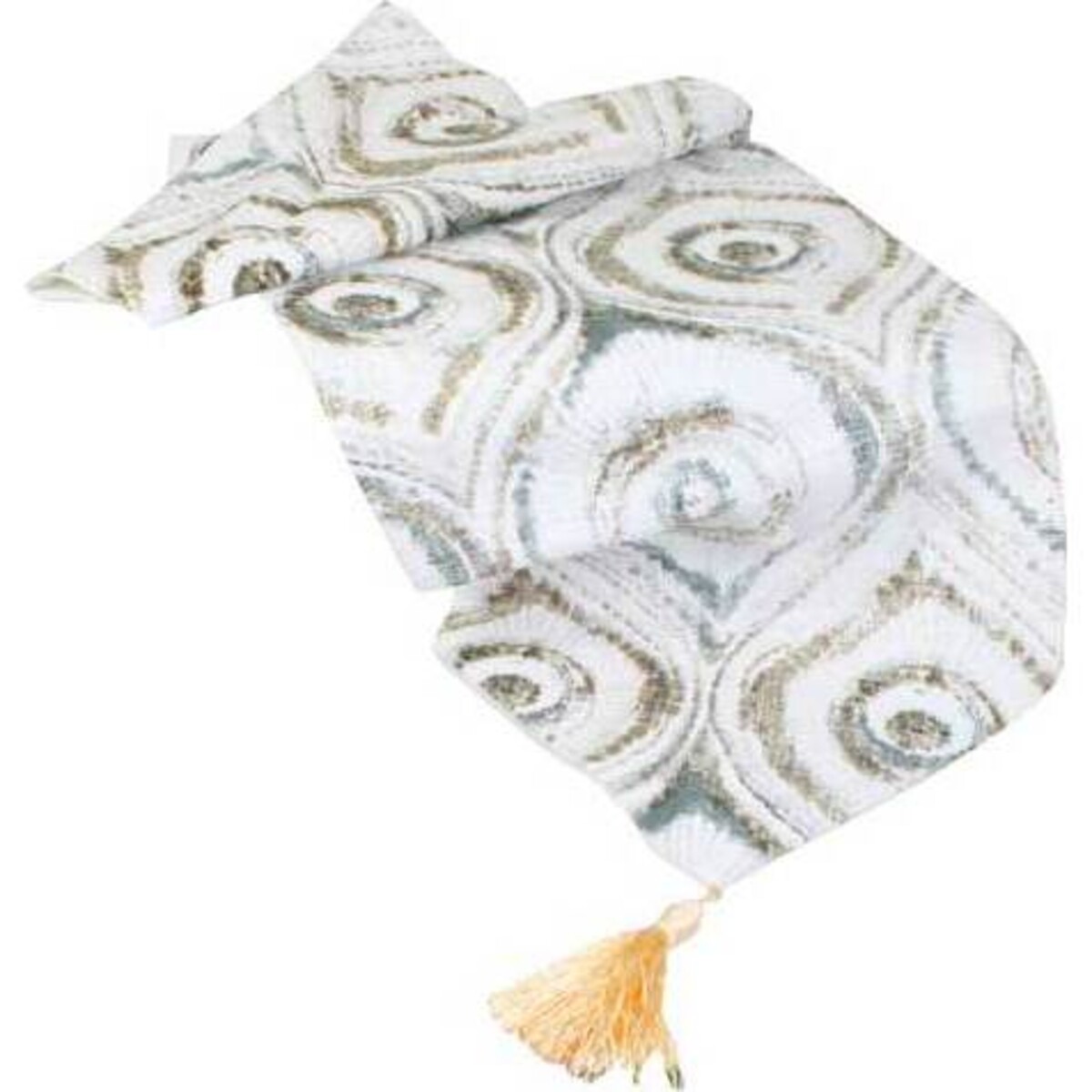 Table Runner Circle Dye has a unique way of capturing the attention of the observer. It features a tassel of orange - golden colour attached to one end. This makes it look classy, along with the notable circle dye patterns which provide a grainy outlook. One may utilize this furnishing accessory on tables inside the home or those set outdoors within the garden for relaxation while enjoying the beauty of nature. Table Runner Circle Dye measures of 33 x 150 cm and is made using cotton fabric. Individuals who have a large number of tables can decorate them using this item to bring uniformity to the home.