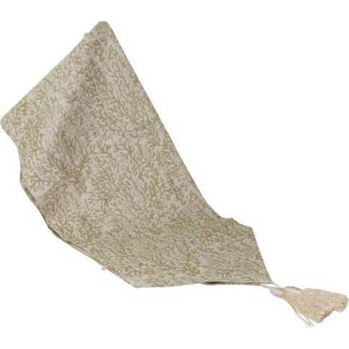 Add table runners to any part of the house where you have display and the look of luxury follows. They could be teamed up with the cushion colour palette or with the table mats and other linen or simply could be a stand apart piece that teams up splendidly with the rest of the setting like this very neutral shaded runner in a Coral sandy beige. The white and beige coloured runner makes for a small add on with a huge effect. The tasselled ends are again in a golden beige colour and look stunningly royal and classy. Add this table runner made of high quality wrinkle free polyester to your table setting and see how even the most simple of occasions gain the look of being special and above crest. The length of the runner is about 150 cm and the width is 33 cm making it perfect for a four - seater table as well as six - seater.