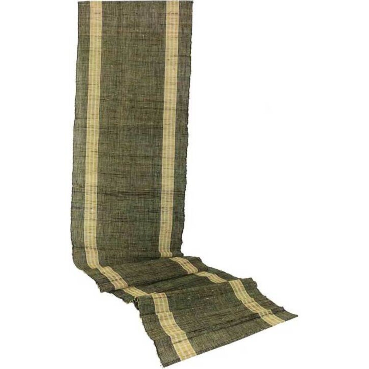 Just about 31 cm broad , and 150cm long, this runner is predominantly grey in colour and has this very broad and rather bold stripe in golden beige and white that provides the length a certain design definition. Very classy and understated, this runner will be placed at the centre of the table for placing the main dishes and with it could be combined the most beautiful of colours-could be white, red, black or even maroons and purples-the choice is wide as its neutral colour can be the perfect foil for brighter table linen. The material used is ramie-one of the oldest fabrics known to mankind .The runner is fade wrinkle proof, and resistant to shrinkage, soft to touch and will retain its colours despite many washes. Such handcrafted and hand-woven runners are solid in their good looks and very elegant in their presentations making any simple occasions seem special with their presence.