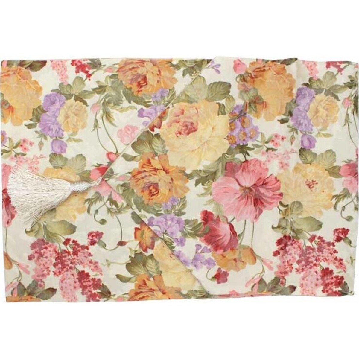 A stunning brightly coloured floral pattern runs the entire length of the runners and it's impossible not to notice how lovely they are. The runners are pointed at either end and have a single white tassel hanging from each point. Their design and style make them perfect to use for day to day use and in almost any room that's decorated in a contemporary, country chic, traditional or romantic style. The runners fit small and medium tables and are ideal for almost any type of setting. Thanks to their hodgepodge of colours, they complement a variety of colour schemes. They add a burst of colour on whatever table they decorate and can brighten up an entire room.
