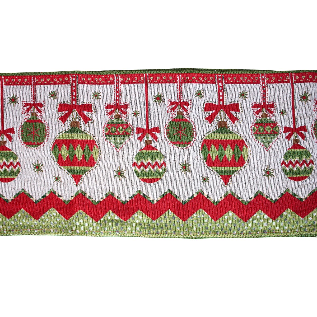 Adding a table runner brings colour and textures to all kinds of tables - be it your console, the dinner table or the side board. The runner adds a focal energy - introduces colour and textures and binds the paraphernalia on display together. Crafted from polyester, it will with stand saucy spills and water as well as a little coffee from time to time and will look its best after a wash. The lanterns it features look festive adding to its main thematic. The colours and bright and the green and red pop in the white backdrop. Bring the joy of the season head on into your spaces with this simple but effective table accessory. It is 180 cm long and 33 cm wide making it a great choice for a six - seater table.