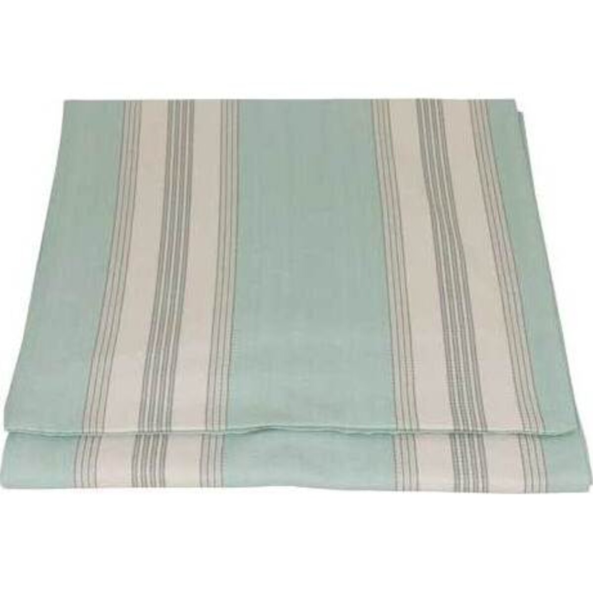 Table runners add that centring to the table setting and one can go ahead and find a set of matching table linen to go with it. Placed on the main dining table or the table by the window where you would like to showcase something really pretty - would be the right places to add this runner . The pale powdery blue seems to be offsetting the gorgeous bold yet subtly designed stripes that give the pattern a classic staidness. While being simple, there is this altruism flair that only French designs seem to posses that enables all things within range to gain some kind of special feel - This runner with the finest tough cotton and polyester mix fabric will last through a lot of usage, its colours will remain strong and it will be the one piece on the table that will see you through many special occasion settings that need more than just serveware.