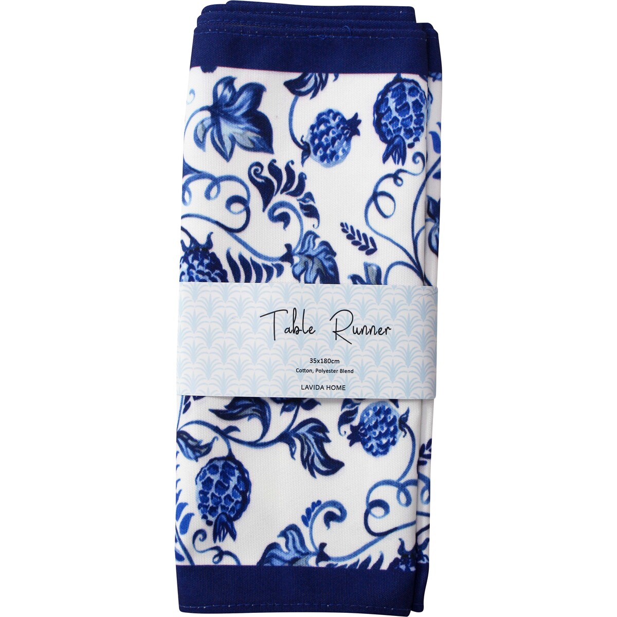 Made from fine quality linen and polyester-the Hampton Runner combines a vintage heritage look print with the freshness of indigo and white to make it a great find for any table top that could need a dash of colour. Liven up that console where you could add the Hampton runner along with some flower vase and table lamp to complete its vintage cottage feel look. The blue and white colours also makes it a versatile choice for your ding need as it will quite easily combine with all kinds of porcelain crockery. The length at 180 cm and width at 35 cm makes it a great choice for a four- or six-seater setting. Add a touch of innovative design to any long table with a runner that brings with its colours and designs that instantly adds to the décor.