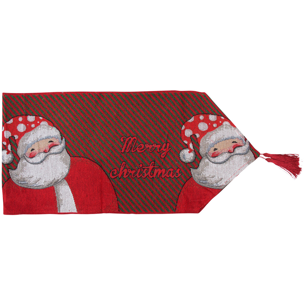 This piece rounds out one's Christmas ornamentation while adding sophistication and elegance. Did I mention that Table Runner Happy Santa is not strictly for dining tables, it is a statement piece with versatile usage for end tables, side tables, buffets, coffee tables, console tables, and tea carts? In both formal and informal settings, table runners add charm, texture and interest to any table. One can use Table Runner Happy Santa as a base layer for a centrepiece to bring festivity to one's interior styling.