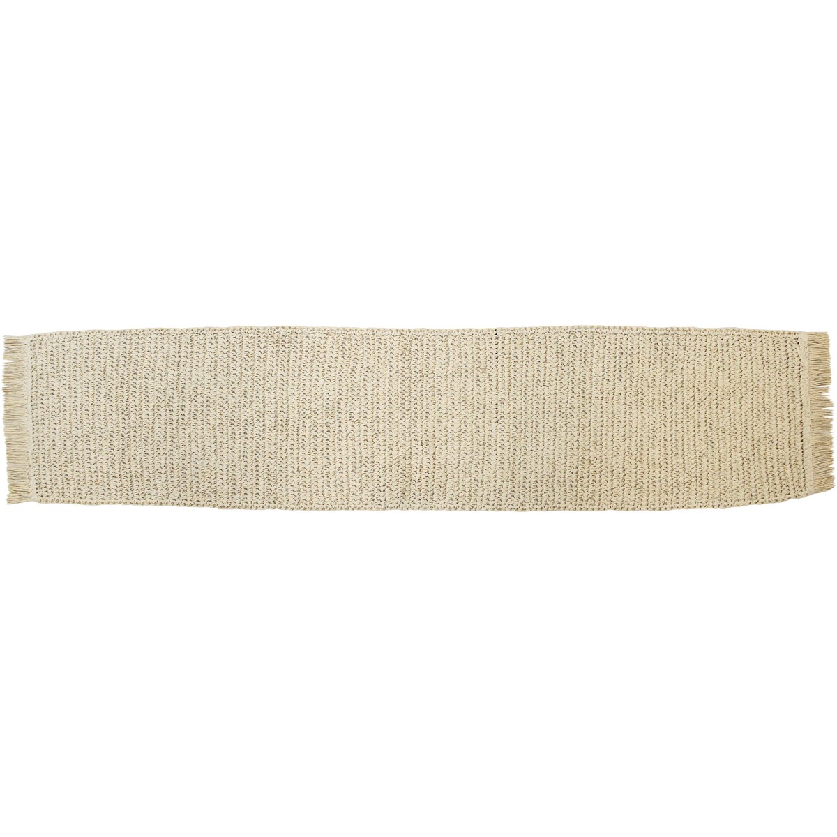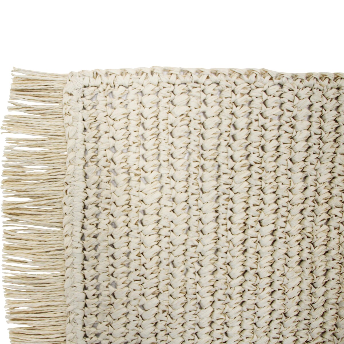 The length of the runner is 160 cm and its width is 33 cm making it a fine pick for a six-seater table. The fringed ends adds that touch of fancy making its appearance all the more chic and bohemian. The rice paper fibre is light weight and easy to care for and yet sturdy. Will look especially fabulous if a beachy or boho chic looking setting is on the cards. A great choice for your dining table and would also look delightful when placed on top of the console or the side board. Can be easily cleaned and reused time and again without any worry of the weave coming loose. Makes a serene splash of off white on the table. Runners such as this also keep your table tops from getting damaged from searing heat and spillages.