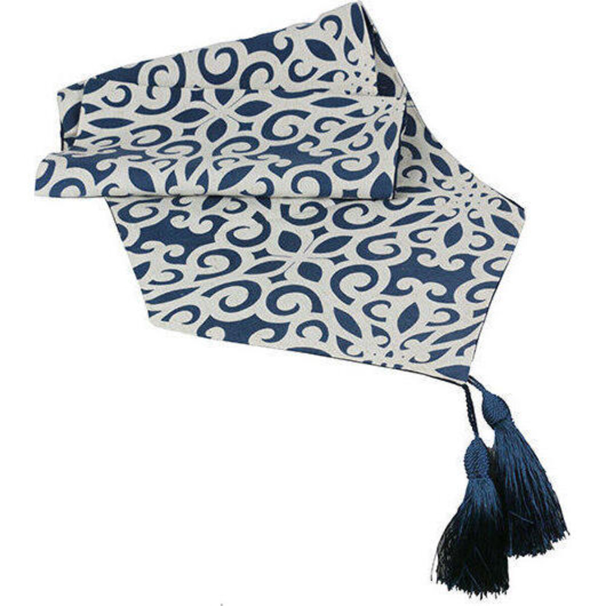 Table runners help in making your table setting gain a wonderful feel of completeness. This piece is 180 cm in length and about 30 cm in width making it perfect for a six - seater table. The runner would get along wonderfully with fabric placemats in blues and in dull whites. More vivid colours too could be opted for. Add to it the glitz and glitter of great cutlery and crockery and you have your special occasion setting looking great! Made from fine quality fabric, the richness of the print on this runner gets more life from the sheen and the density of the fabric used. The blue tasselled ends add a touch of grandeur and finish as all tassels do. The seams on the edges and the neatness of its bright print renders it a special place in your home. Place it either on the dining table or even your side board to make it look different. Adding runners can give a touch of glamour to your spaces as its fabric and design brings with it a vividness of design that can be further highlighted with other aspects of your décor.