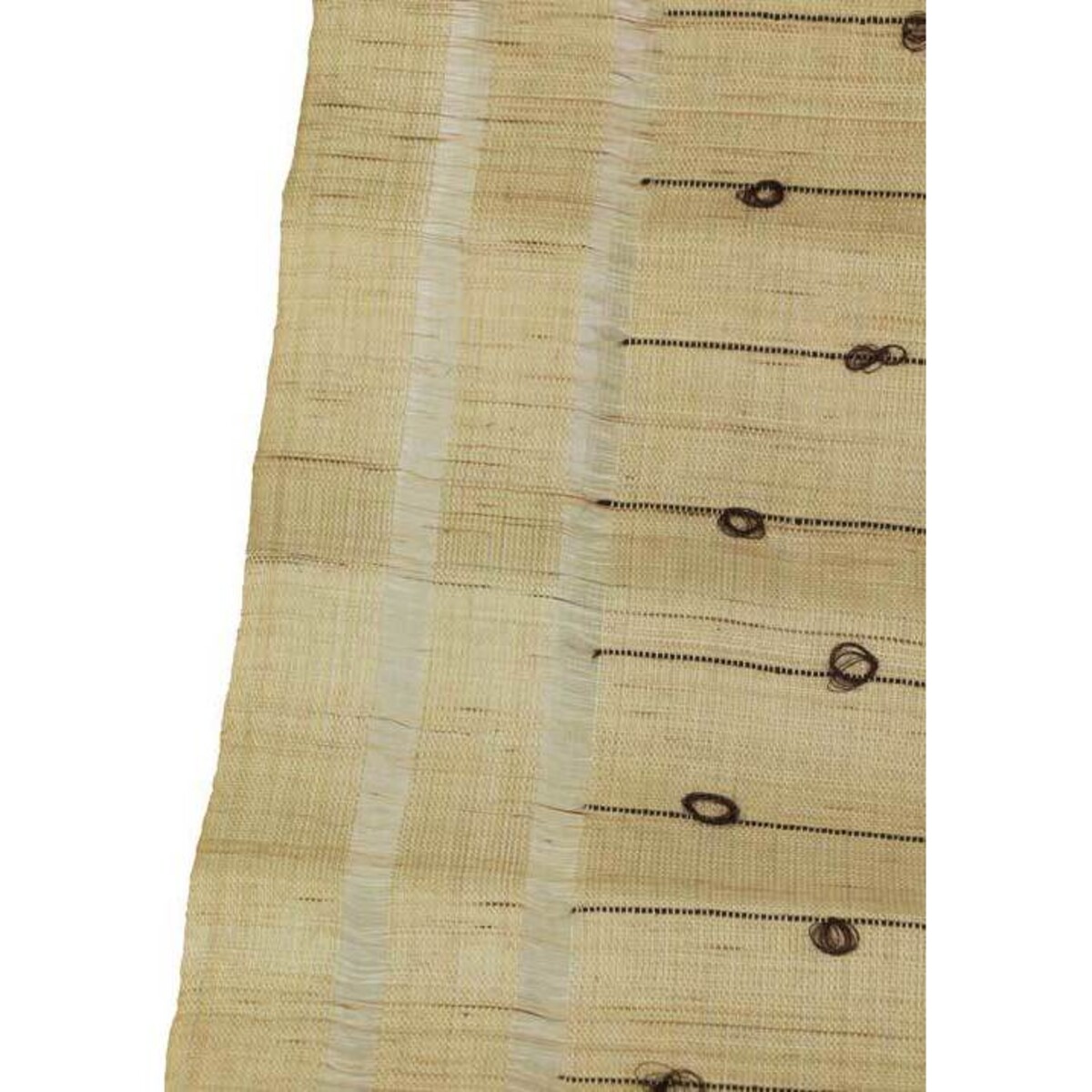 This beige and white table runner encompasses the best of the old world design and fabric usage with the most modern and contemporary of styling. Made from the super absorbent and fade or crush resistant ramie yarn, the runner will not just make a rather elegant statement on the table but will also provide the rest of the room with a neutral colour theme to get the look centred around it. So white china will sparkle more and crystal will look all the more dazzling on the table. When set along with serviettes and placemats that are bright they will get off set by the quietness of this runner. Easy to wash and maintain the classic beauty of this runner will be something that you will be able to combine with any number of different colour combinations. The natural knots can be seen in darker thread and the white bold white stripes along with the black thread design will look delicate and understated in its beauty. The width of the runner is at 43 cm and the length is 150 cm.
