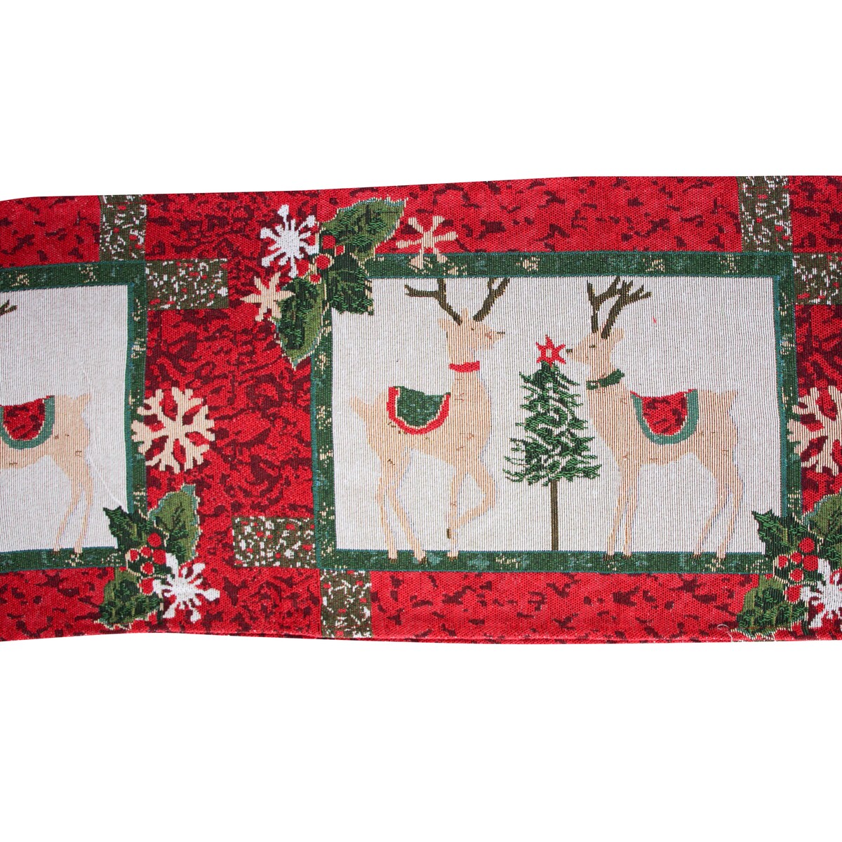 Invite the magic of Christmas and the chill of winter into your home with Table Runner Reindeer Pair. This Christmas-themed table runner is perfect for creating an ambient Christmas aura and setting the mood for festivities around the home. Our collection comes in handy to keep multiple centerpieces or serving platters in line in a stunning manner. it reduces noise pollution by softening the clanging of serving platters and dinnerware.