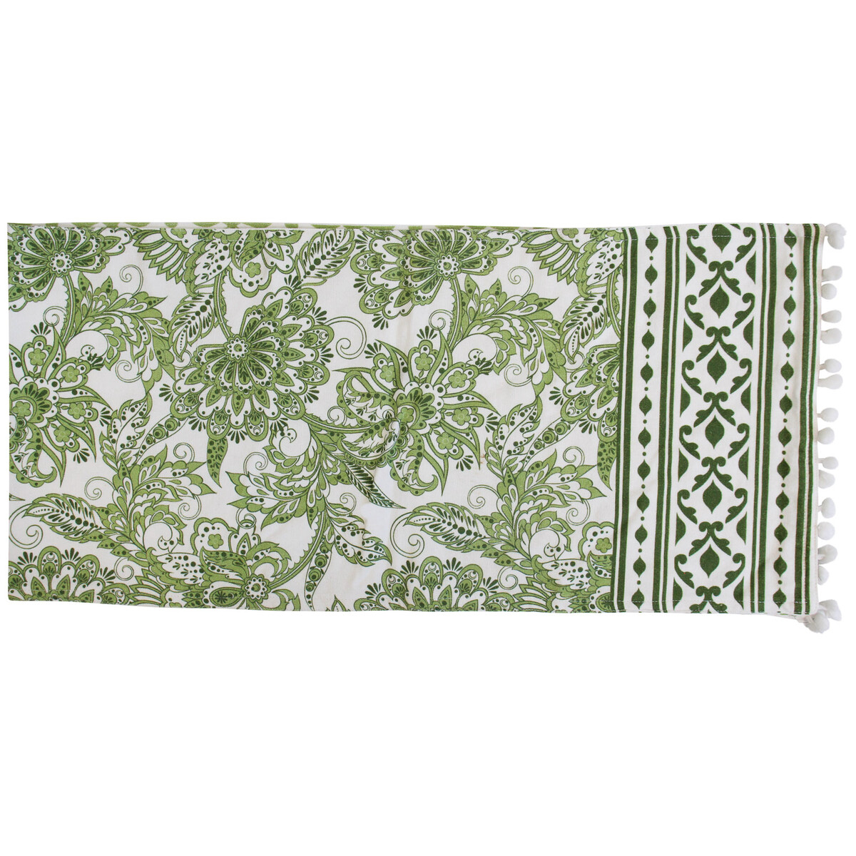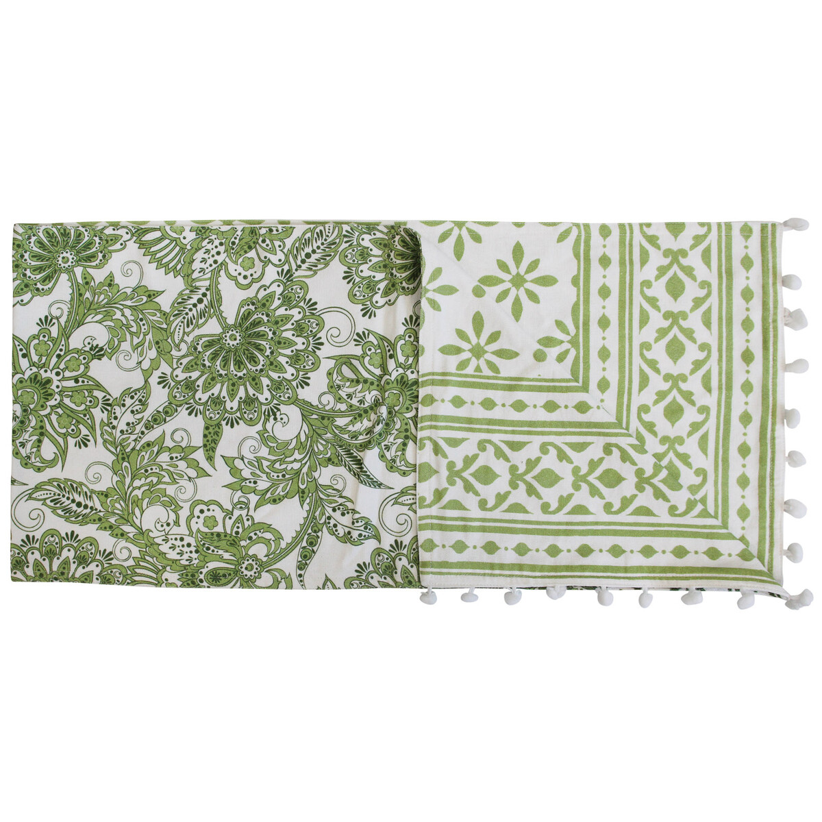 Bring a touch of old world charm to your table setting with the sage and white coloured table runner which has been finished with a row of pompoms to dress up its ends. When considering a fine and elegant kind of dining experience adding the right kind of table runner can make a great deal of difference made from fine quality cotton canvas, this one offers you the right kind of size for regular six seated table and a reversible feature. Enjoy two different patterns in one runner!