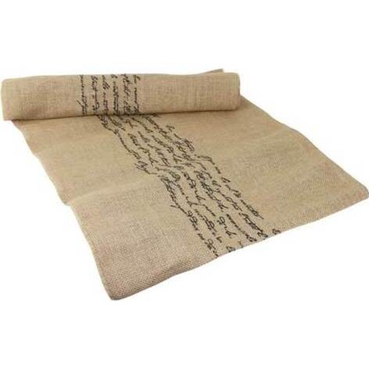 Bring on the beauty of farm and country feel look to your table setting with this amazingly organic and simple in design look that will instantly enhance the setting on your table. This beige and white patterned script print hessian table runner adds a dimension of rustic beauty to your setting more than any other thing can.