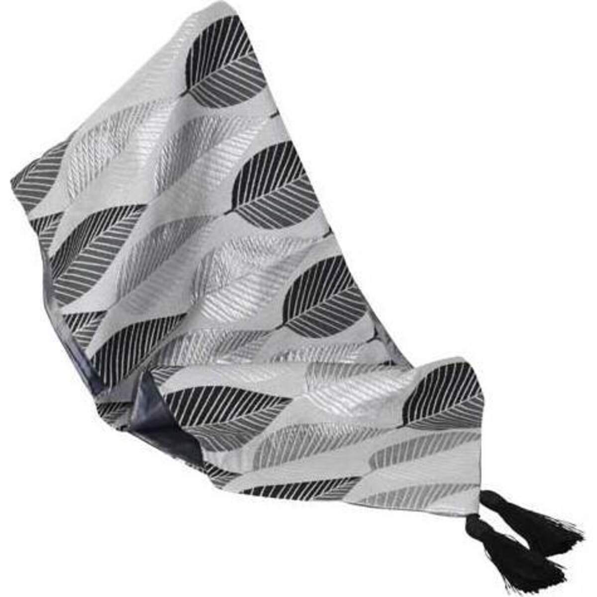 Unique decorative accents are what is needed by tables when occasions demand colour and artfulness in the way the table is laid out and what better way to make the change in the setting than by adding a gorgeous table runner in silvery colours, with backdrop of white and some black for definition. The leaf print makes the table look dimensional. Colourful and appealing in every possible way. Fuss free usage, the kind that you will be able to wash and use several times with no fear of fading - its 150 cm in length and 33 cm in width, spanning across the length of a fairly large table. The runner has an eclectic design which has a muted colour combination which will be in synch with the rest of the decor .A perfect little embellishment that will certainly make all the little noise with its colour and design.