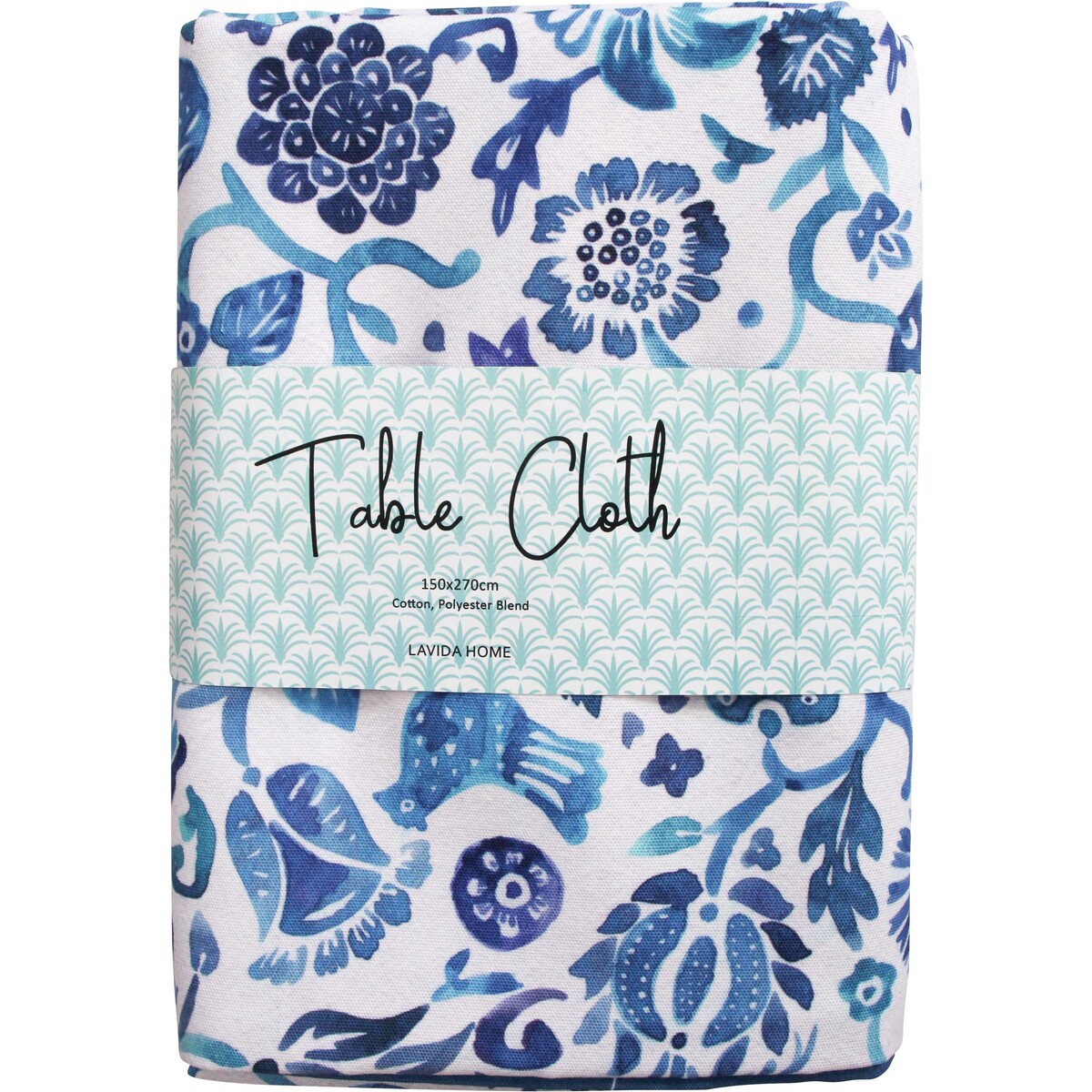 The table cloth exotic combines the beauty of white and blue in their most sparkling clarity and blends it into this exquisite design that adorns the entire body of the table cover. Essential for giving you that perfect table scape and adding a zestful dose of colour to the space, use this fine quality table cloth. Made from cotton and polyester blended in a manner that it creates a fine texture.
