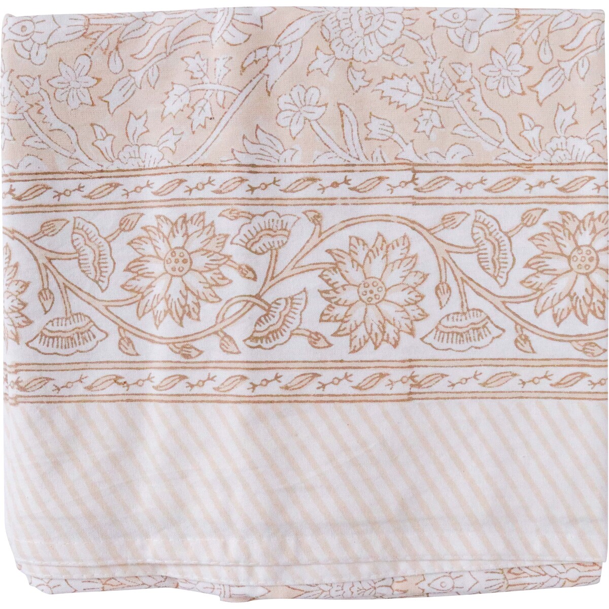 Introducing our exquisite Tablecloth Natural, a must-have addition for any homewares and giftware retailer looking to offer their customers something truly special. This tablecloth, measuring 145x270cm, is crafted from high-quality cotton' and dyed using traditional block printing techniques, ensuring each piece is unique and remarkable in its own way. The intricate floral patterns and delicate stripes evoke a sense of timeless elegance, making this tablecloth a versatile choice for various decor styles, from rustic chic to refined traditional. Whether laid out on a dining table, a console, or even in a cosy corner of an office, its soft beige tones and intricate designs will effortlessly enhance any space. Handmade with care, each tablecloth tells its own story through slight variations in the block print - a testament to its authenticity and artisanal craftsmanship. The subtle differences in sizing and design are not imperfections but the very essence of its beauty, which customers will cherish and celebrate. Ideal for everyday use or special occasions, this Tablecloth Natural is not only a stylish addition but also a practical one. Easy to care for, it requires just a gentle cold-water wash and careful drying away from direct sunlight, ensuring its durability and lasting charm. Do note, it is best displayed away from direct sunlight to maintain its pristine appearance. Retailers, this tablecloth is bound to be popular among consumers who appreciate artistry and quality. It’s not just a tablecloth - it’s a statement piece that brings warmth, character, and a touch of luxury to any setting.