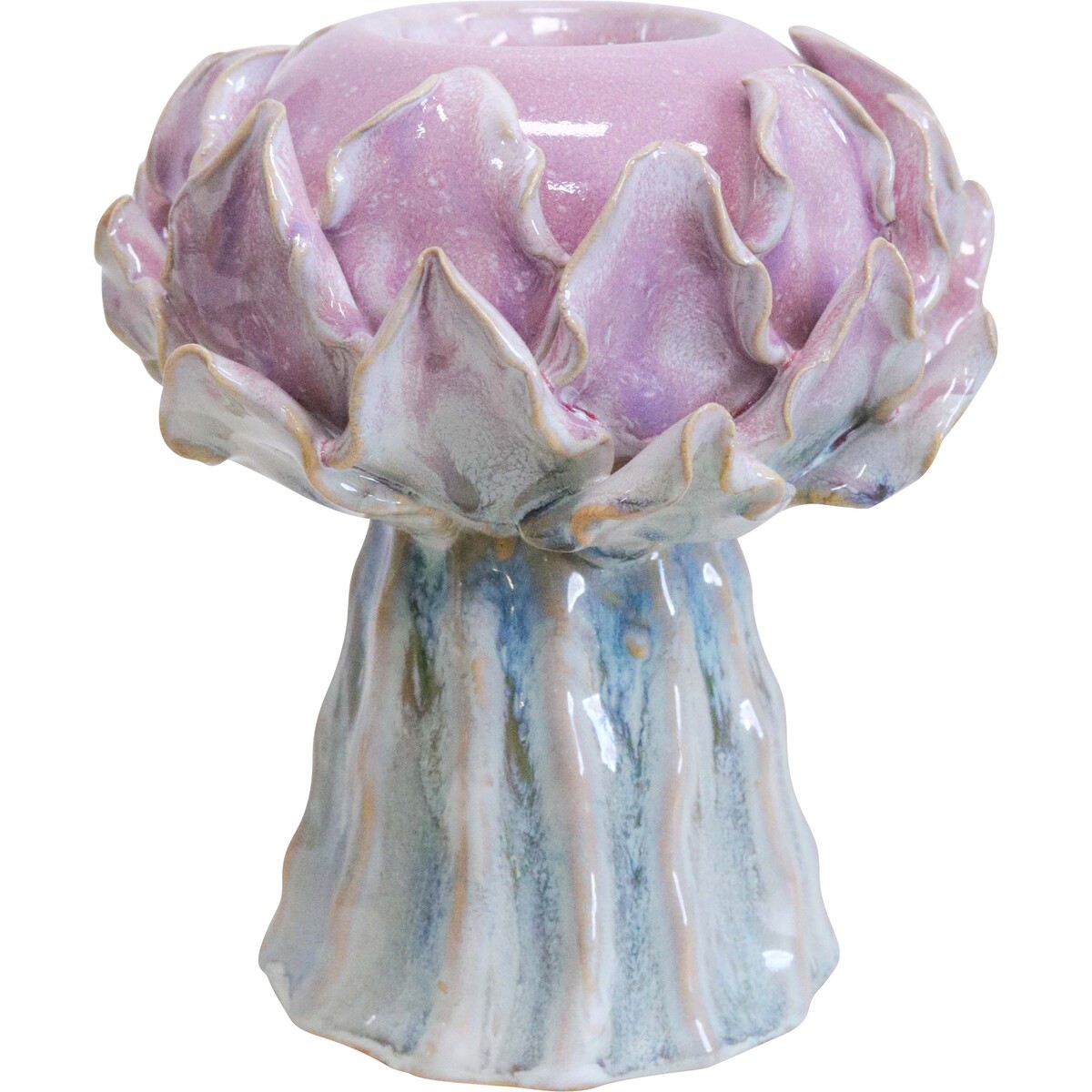 This Talia Candle Holder has quickly become one of those pieces we find ourselves stopping to admire again and again. The way it brings an artichoke to life, a garden vegetable, and still manages to be so visually enchanting is a feat in itself. The smooth pastel hues of lavender and sky blue stand out with a calming effect. We think it brings that sophisticated touch of the Mediterranean coast to any room. It’s hand-finished, giving every piece a unique quality that you just don’t get in mass produced pieces.