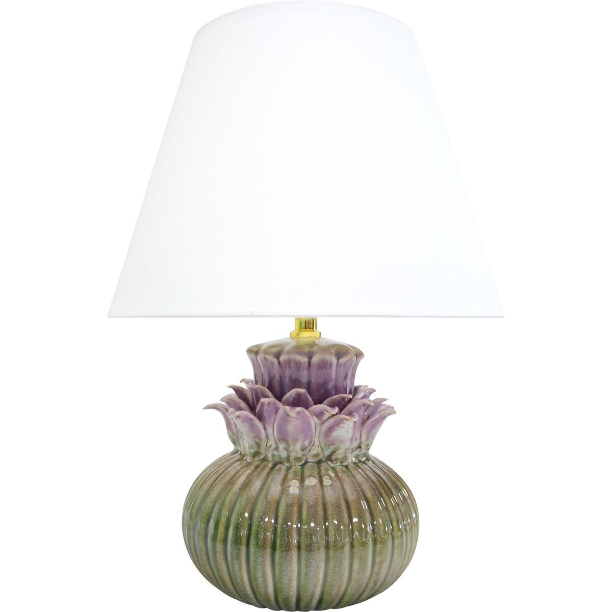 This Talia Lamp is one of those pieces that just draws attention. We think the ceramic base - with its gentle purple and green palette and layered petal design - would really speak to customers who want a subtle floral accent for their lounge or bedroom. This lamp, sized at 28x28x41cm, is topped with a white cotton shade and the whole look really captures that soft, romantic feel so many shoppers are after right now.