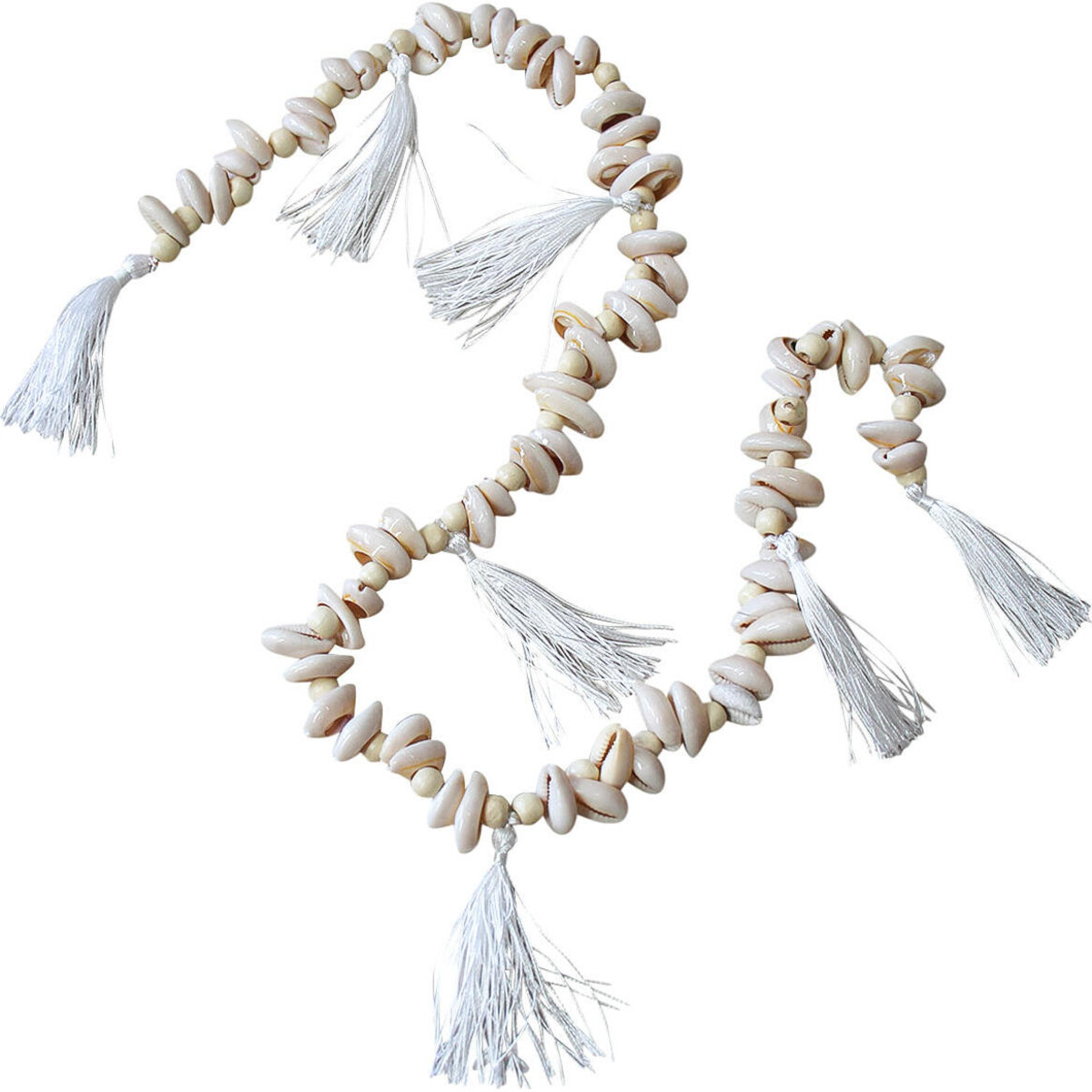 The tassels are all white - creamy white shells get a further highlight with the beauty of the tassels that are evenly distributed along the length of this 97 cm long string created from tiny seashells - a perfect blend of boho chic style that will fit win perfectly with your need to accessorize either your spaces or your clothing with a marine twist.
