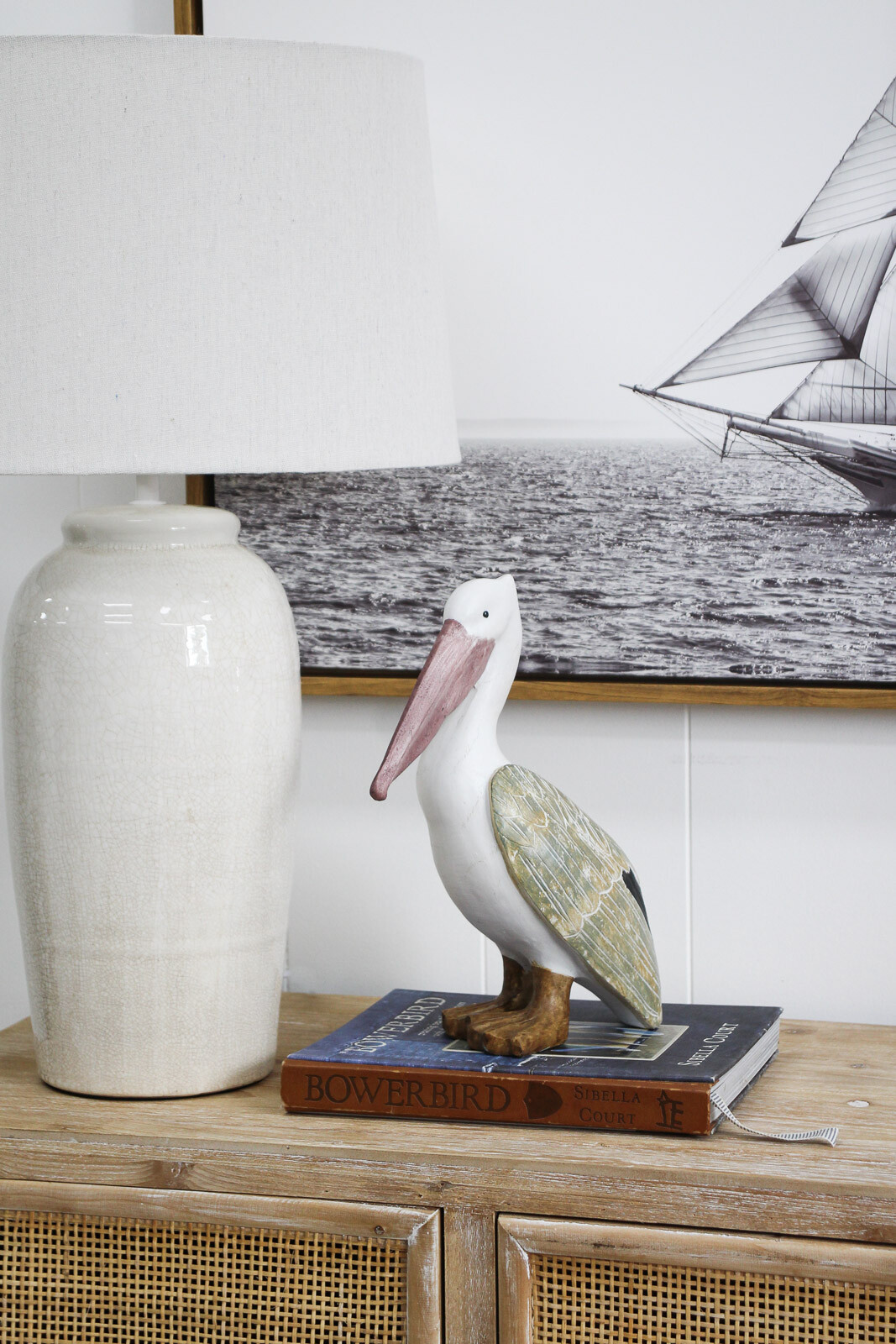 We really do have a soft spot for quirky coastal decor, and our Tawny Pelican is a favourite for adding a touch of seaside whimsy to homewares ranges. Every detail is picked out in resin - from the pastel olive feathers to that iconic beak - and it measures 23x13x30cm, so it’s a solid little centrepiece for sideboards or consoles. The lightly distressed finish means it pairs well with classic Hamptons looks but can work beautifully in more contemporary settings too. A lot of customers are chasing that coastal retreat atmosphere at home these days, and this pelican is a lovely way to bring that in without going overboard - excuse the pun! We love how he sits among greenery or perched alongside vases and books, whether in an entryway or as a living room accent. Makes a handy gift idea too for bird lovers and design fans alike.