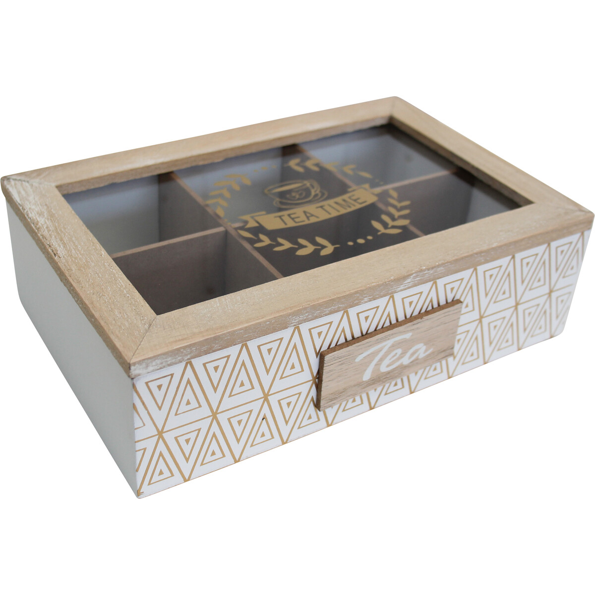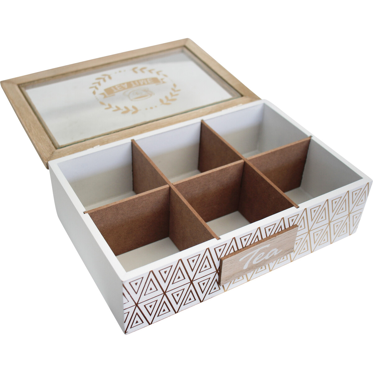 What is most striking about this Tea Box Inca and which differentiates it from conventional tea boxes is the fact that it offers customers the opportunity of storing so many tea flavours and fragrances using six different compartments which ensures that the flavour of each of the stored tea is preserved and unaffected. Another striking factor is the obvious ornamental appeal which this tea box possesses. It is painted in a white themed palette while its frontal part is decorated by several up and down facing triangles.