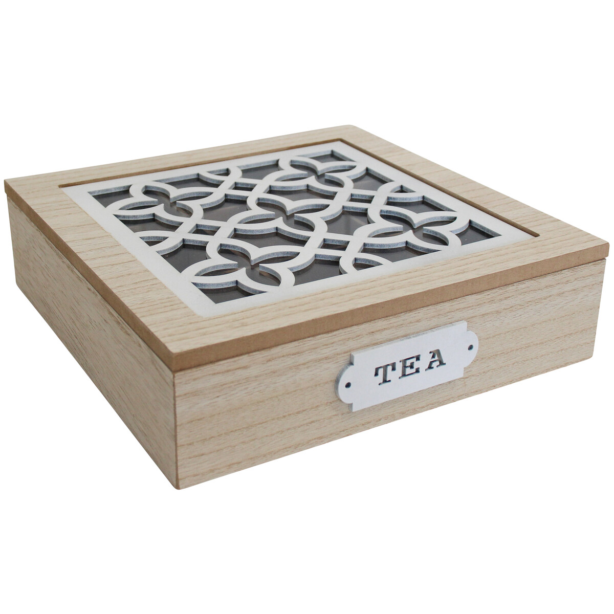 Functionality of a superior quality tabletop accessory meets fine aesthetics to bring to you and inclusion for your home that is bound to be loved by anybody who is a Tea enthusiastic. If you understand the difference between and Earl Grey from and Oolong aur a Makaibari from Assam tea, you would completely appreciate the need for this accessory. The tea bags held in these six compartments will hold their flavours and will fit in perfectly because the compartments have been created keeping the size of the bags in mind. Will look elegant and charming when placed on your coffee table or your tea counter. It is a fine gift to give to somebody who is a tea lover who will appreciate the detail and the design aesthetics that has gone into creating this piece. The MDF structure gives it a solid construction and durability. It's hinged top it is easy to open revealing the six compartments .