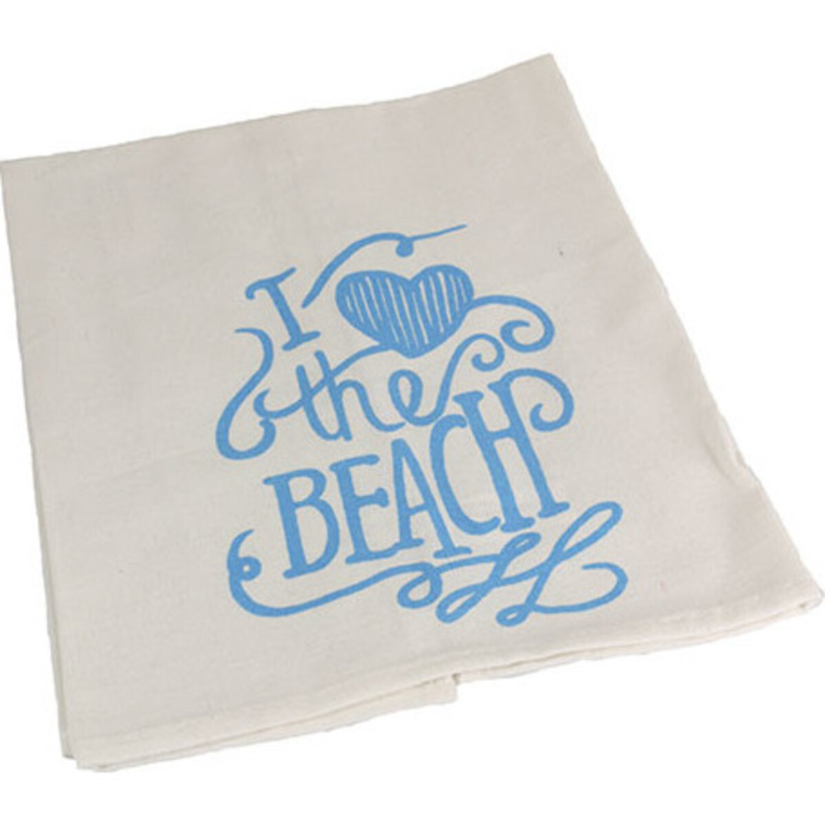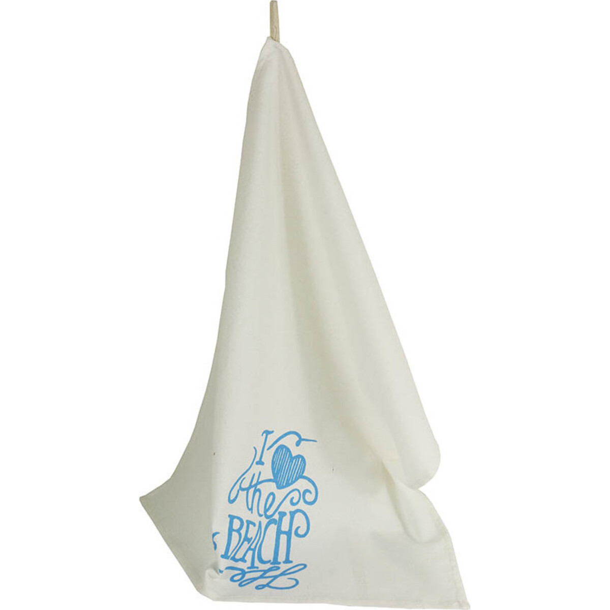 Tea towels are an important part of the kitchen as they aid the drying of not just your wet hands but the clean dry ones helps remove dampness from dishes and adds shine to their surfaces and thus they are hardy and a hardworking. But what they need not be is drab looking. Anything that has such great utility must be designed well and when they come in white shade as this tea towel, it can be used to also lend more charm with the simple graphics that it can host. This tea towel is about 59 cm long and 49 cm broad and comes with the lines - i love the beach in one of the corners - the colour focuser is blue and that it what makes the design come live in its true sense. Soft, absorbent and easy to wash and reuse, this superior cotton made tea towel will look great and one could make a set of these to keep your kitchen accessories collection looking great.