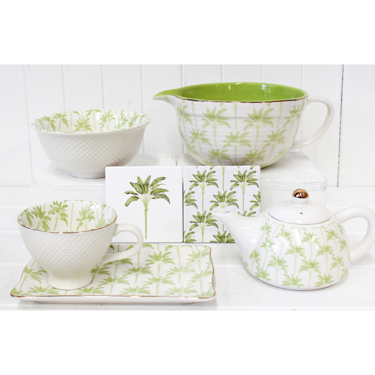 Just as a cup of hot tea is essential to your me-time, our banana palm tree teapots are necessary to create the perfect cup of bliss. Cover your tea table with the banana palm tree designed teapot that keeps the tea warm for a longer time and has an attractive palm tree print on the outside gives it a fancy and exquisite look. Want to serve your guests in style? Then our banana palm tree teapots gives you a timeless design and a set of cups and plates to match with. The teapots are made of premium, high-quality porcelain for strength and durability. Porcelain is the most prized material for tea pots as it's non porous, holds the temperature very well and is easy to clean. They could also double as fantastic gifts to your new neighbours, close friends, colleagues at your workplace and your loved ones.