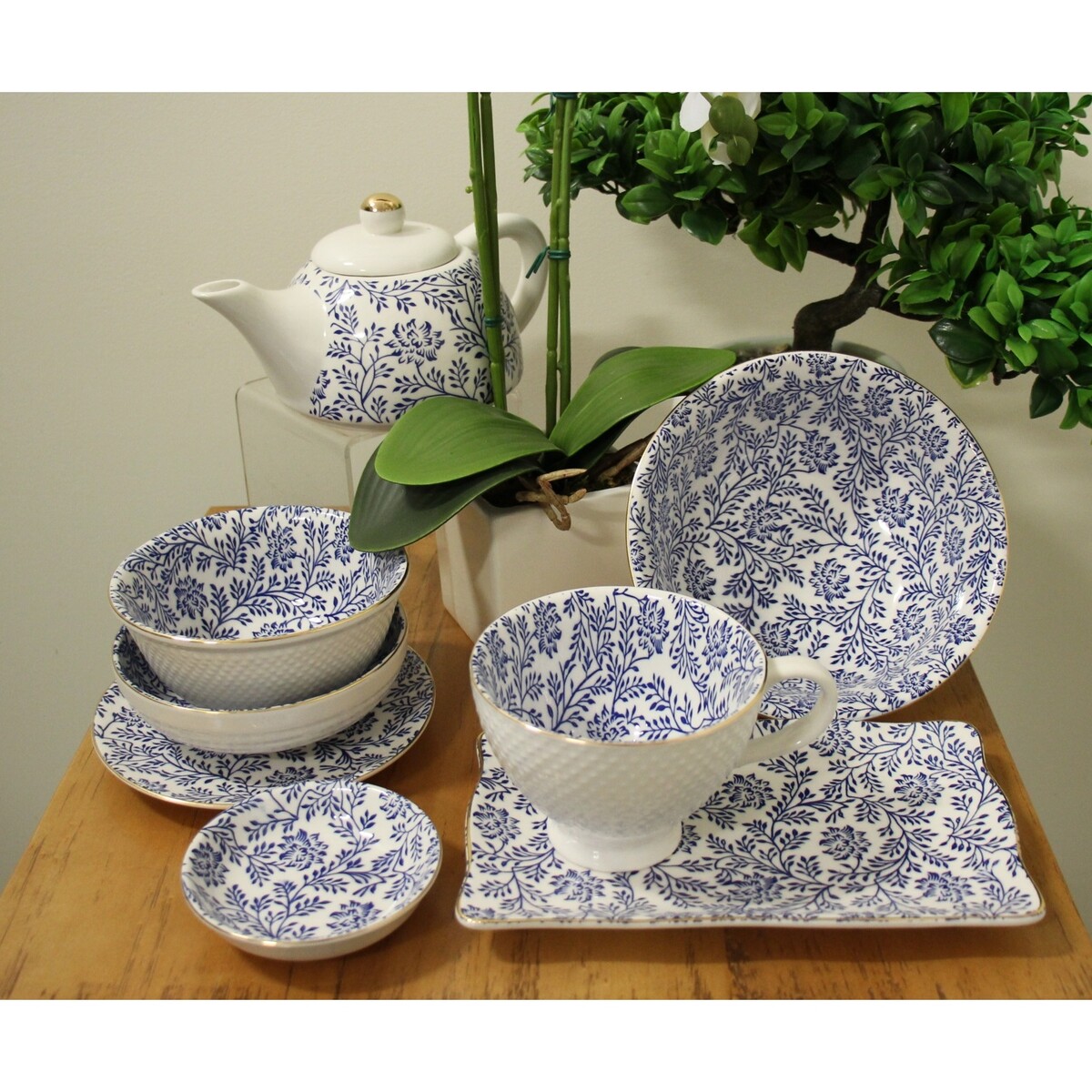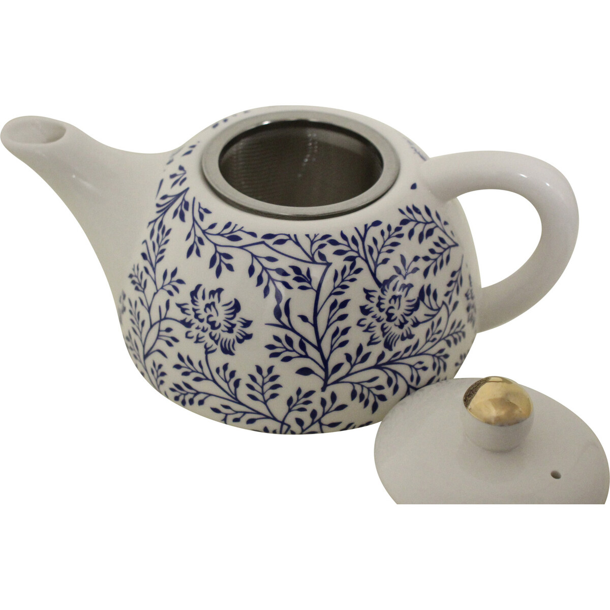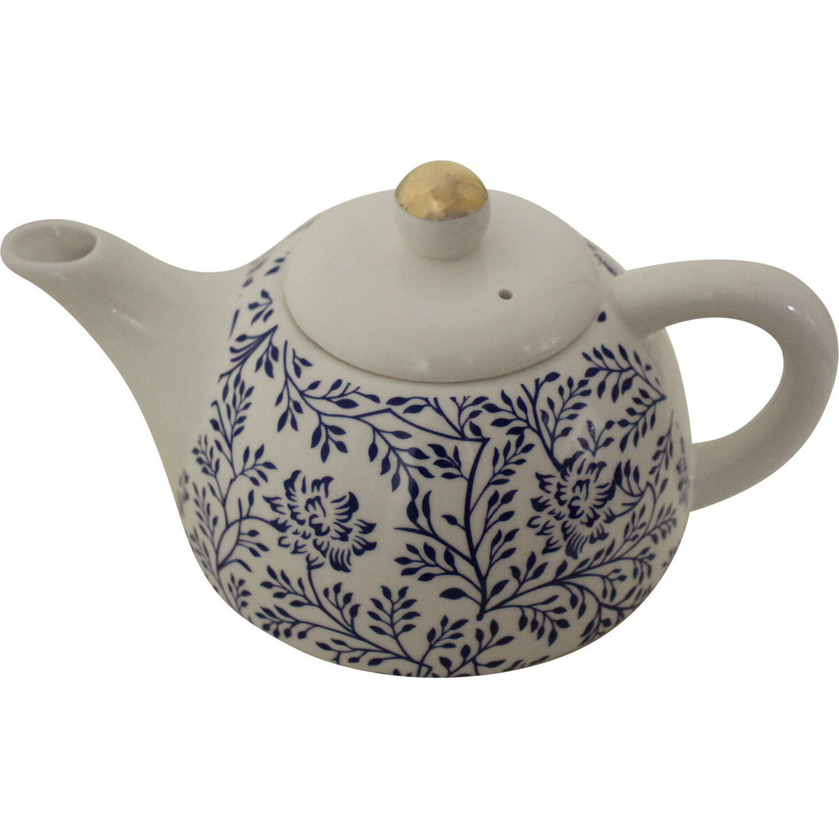 From the time you brew the tea to the time you strain it into your cup-the space here is filled by a much-needed teapot that allows the aromas in the tea leaf to seep into the water. Give it the right kind of warm space in this tea pot that is not just designed to give you a wonderful pouring experience but is the kind to lend your tea time the exquisite look of style and fine presentation. Made from high quality porcelain, its blue printed exterior, the tipped in gold lid and the capacity is has, all adds to its rather attractive features. Easy to grip from its handle, the tea pot will retain its vivid blue coloured print and look fresh and bright despite much usage. Add a touch of porcelain glamour with this finely crafted smooth and round teapot which is 12 cm in height and 19 cm in width.