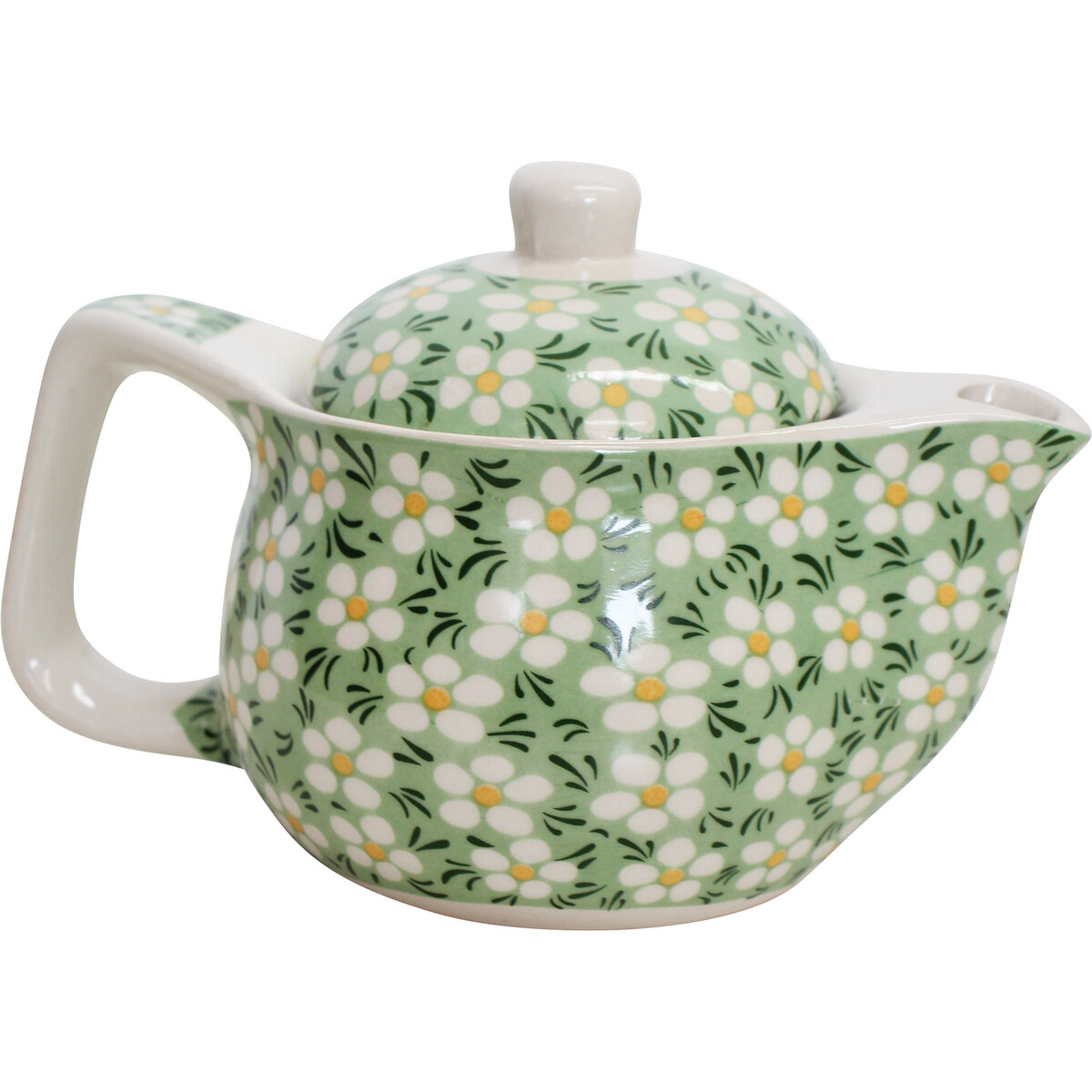 Daisies are beautiful flowers often not very tall. Growing to just about 4 to 6 inches tall, they are quite easy to pick. It is this same enchanting flower that beautifully decorates the exterior of this Teapot Curve Daisy Green. The daisy floral motif is rendered over a mint green décor background with infusion of white and dull yellow. Apart from the alluring daisy floral motif, the teapot itself is made in a visually arresting shapeliness down to its stylish shaped handle and the pointy, curved lip for easy tea pouring. It also comes with an internal sieve.