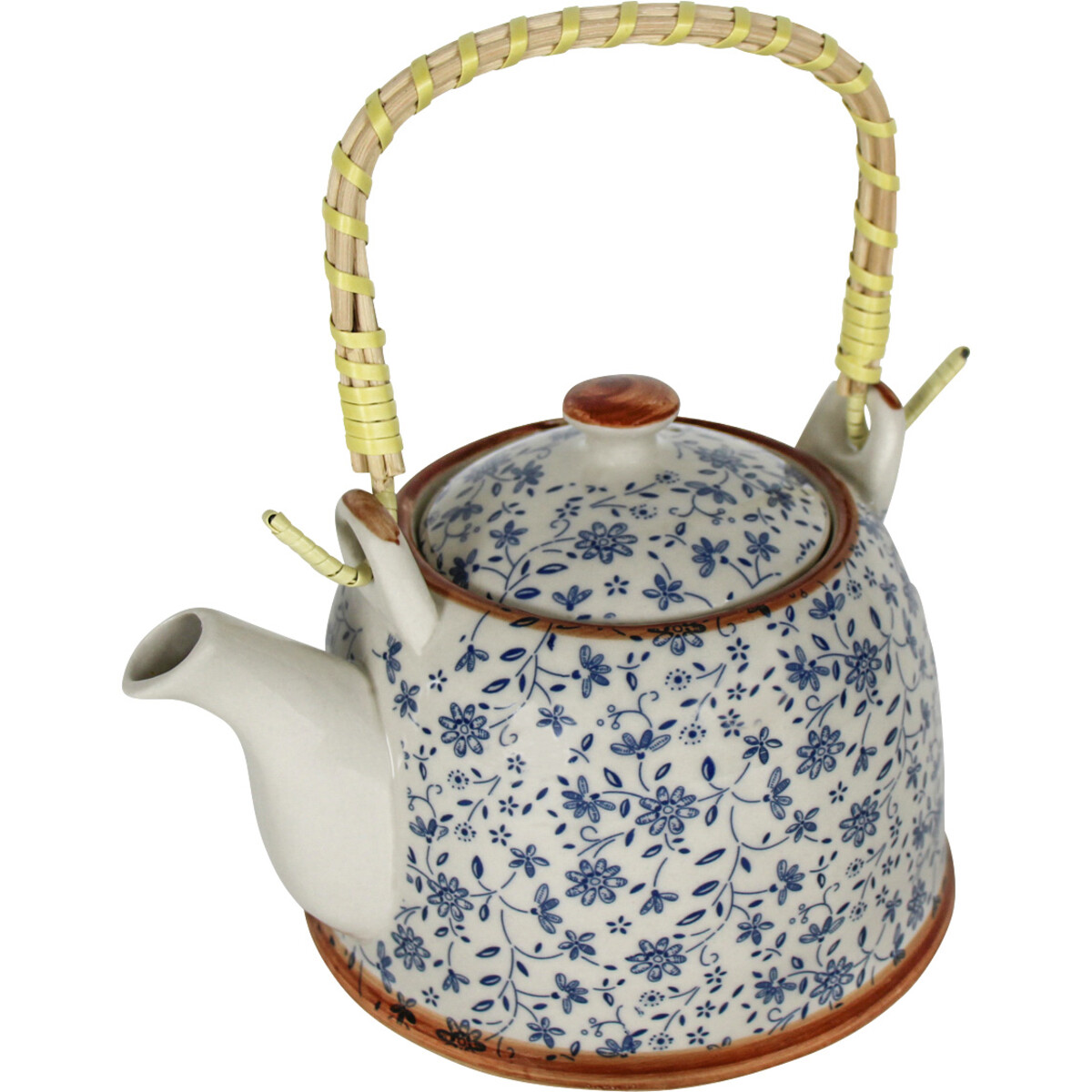 The perfect poring action-the charm of holding a fine quality ceramic pot from which you pour that fragrant aromatic tea-does help give your day that much needed silver lining. After all, any tea enthusiast would know that drinking tea is a s much about the aroma and the flavour as it is about the optics. The fine quality teapot graceful and charming in its design will truly add value to this relaxing moment of your day. The height of the teapot is all of 17 cm and its diameter at 14 cm give sit a solid presence on the tea table-the capacity enough for two to three people. The snout has been designed to give a spill free poring action, while not being in use to make tea-it makes for a splendid display up on the mantle or on the sideboard. The handle is crafted from natural cane and wrapped in the same material helping give it very fine grip. The edging in rust colour defines the pattern and the shape well. The sheen on the outer surface speaks of the fine quality of crafting that has gone into its production.