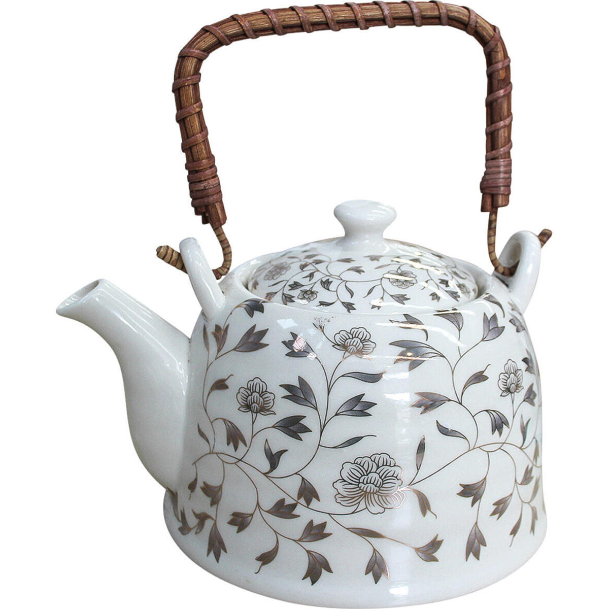 It is that time of the day when the aroma of afresh brew awaken your spirit-the battered mind and body from the day's challenges can truly do with that cup that cheers and when it is poured from a gorgeous looking ceramic pot made from handcrafted technique-the handle has been given this slip free cane wrapping that will allow a better grip as well. The delightful floral print on the body of the kettle adds to its utterly charming looks. Give your tea drinking time the advantage of this charming kettle made from fine quality ceramic that will be able to with stand the heat of boiling water and not get stained despite it being used for brews like black tea. Simply clean with any detergent and it will continue to show off that delectable sheen on its surface. The snout allows a smooth pouring action while the handle makes sure your hands do not feel the heat of the fluid inside the pot. A perfect accessory for your tea or coffee drinking time.