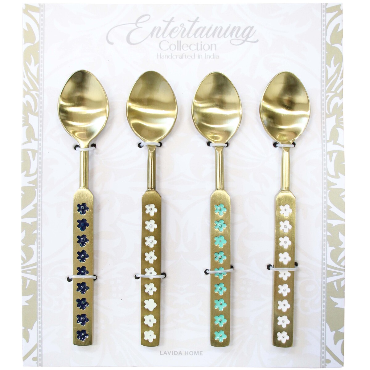These Teaspoon Mini Daisy Mix S/4 are pretty cheerful, right? These mini brass spoons have a lovely floral design that seems to pop off the handle, which is great for a bit of fun at tea time. The pack includes four spoons, each with its own unique daisy colour. Even if it's just serving up dessert or making a morning cuppa, these will have a slightly nostalgic quality for some customers. The set is 15x3x1cm per piece and they're made from sturdy brass. We do want to mention that because they're handcrafted, each one does come out a touch different - it's what makes them so good as gifts, actually. The slight variations in finish and colour give them this rustic, handmade charm.