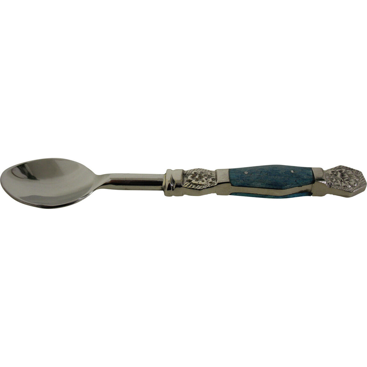 This beautiful serving teaspoon is a wonderful gift for any occasion and would be perfect for any tea loving Mum or Grandma. It is crafted from lustrous stainless steel with intricately carved brass and bone handle in an ocean blue shade. This spoon has been well designed, and is nicely weighted and balanced, ensuring good performance and comfort. Intended for everyday use, it works well with both hot and cold foods. Its long-lasting colour will resist fading and with its clean, simple lines it is even perfect for a casual setting.
