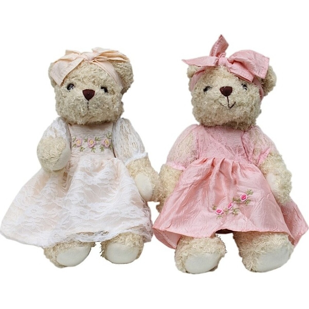 Surprise your precious daughter with these pair of bears, beautifully garbed in pretty white and pink dresses and equally cute bows. Look forward to hearing her squeal of delight upon seeing these bears. It's an endearing gesture that your child will surely appreciate.