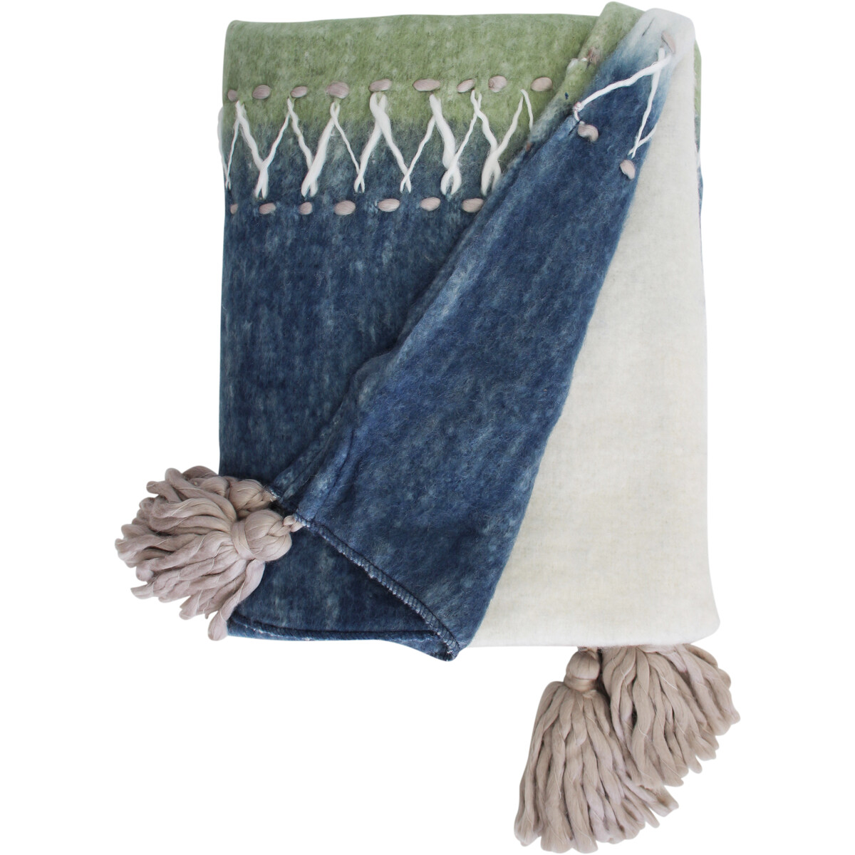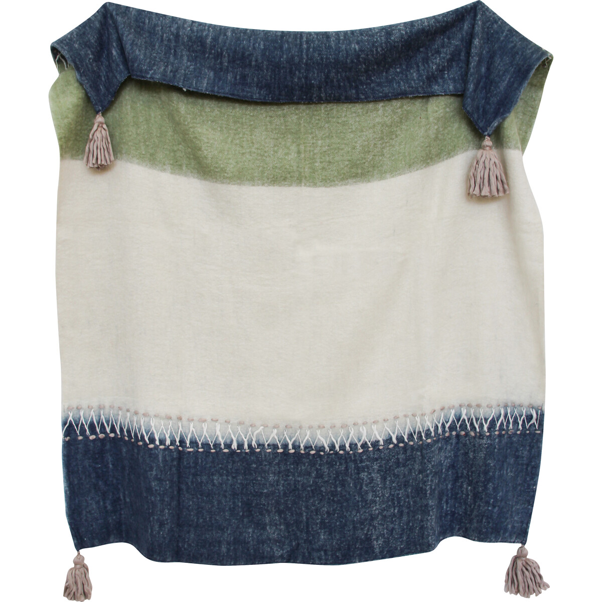 Showcasing a harmonious fusion of four different shades of colours, the Throw Forrest/ Blue / Bell Tassels is a polychromatic beauty which several of your customers would instantly fall in love with the moment they come across it in your shop. Irrespective of where you may choose to display it in your shop, its polychromatic design is a standout feature that would immediately be noticeable. At the four helms are bell shaped tassels which add to the throw's ornamental appeal. The blue, green, white and brown colours blend with one another perfectly.