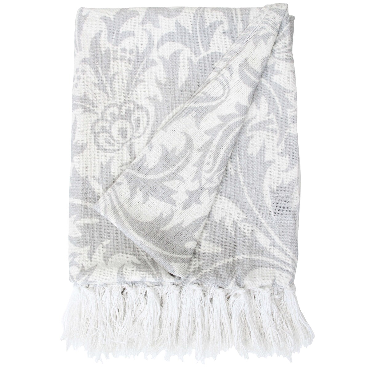 Our Throw Koyla is really a fresh take on a classic look - contemporary, subtle, and perfect for anyone who wants to add a bit of understated elegance to their space. It’s almost got this vintage botanical vibe, with soft grey floral detailing running right through it. It’s made from pure cotton. Feels reassuringly textured and super soft at the same time, not too heavy or synthetic like some machine knits tend to be. The 125 x 150cm size is ideal for tossing over the end of a sofa or just having ready to curl up with on an armchair. And those chunky tassels at the edge - they’re satisfyingly tactile. There’s this pale neutral palette too - it’s soft and relaxing, making it easy for anyone to style back with what they already have at home. We always tell customers that delicate-cycle cold washes are best for cottons like these, especially if you want to keep them looking fresh and new. For best results, dry in the shade - this helps avoid fading of that lovely print. These throws actually blend beautifully with any decor theme, whether there’s someone looking to dress up a modern apartment or something a bit more coastal farmhouse or traditional. Their versatility as both snuggle-buddy and decor accent is just what makes them so good as an everyday seller, right?