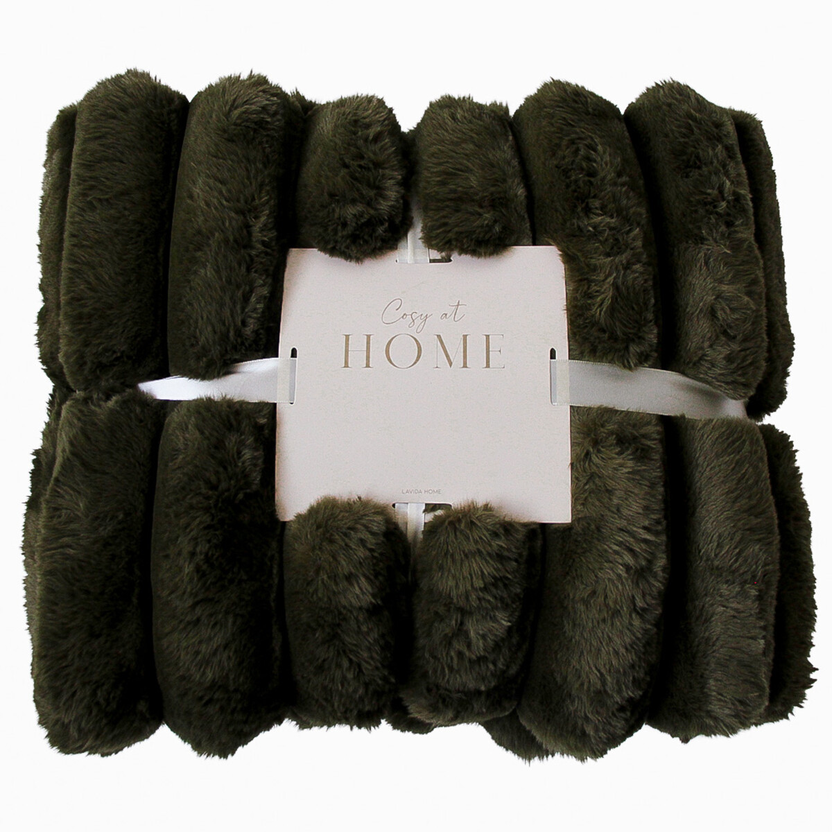 Meet our plush puffer throw - it's a proper statement with that mossy green. We're talking 130x150cm of ribbed, fluffy faux fur on one side and a sleek velvet on the reverse - really dramatic texture change, so you can drape it over furniture for a bold look or have clients pick it up for snuggling. People who like feeling cosseted but need something that fits their colour palette absolutely gravitate towards these - we'd encourage shops to keep one unfolded in-store because the tactile experience really wins them over!